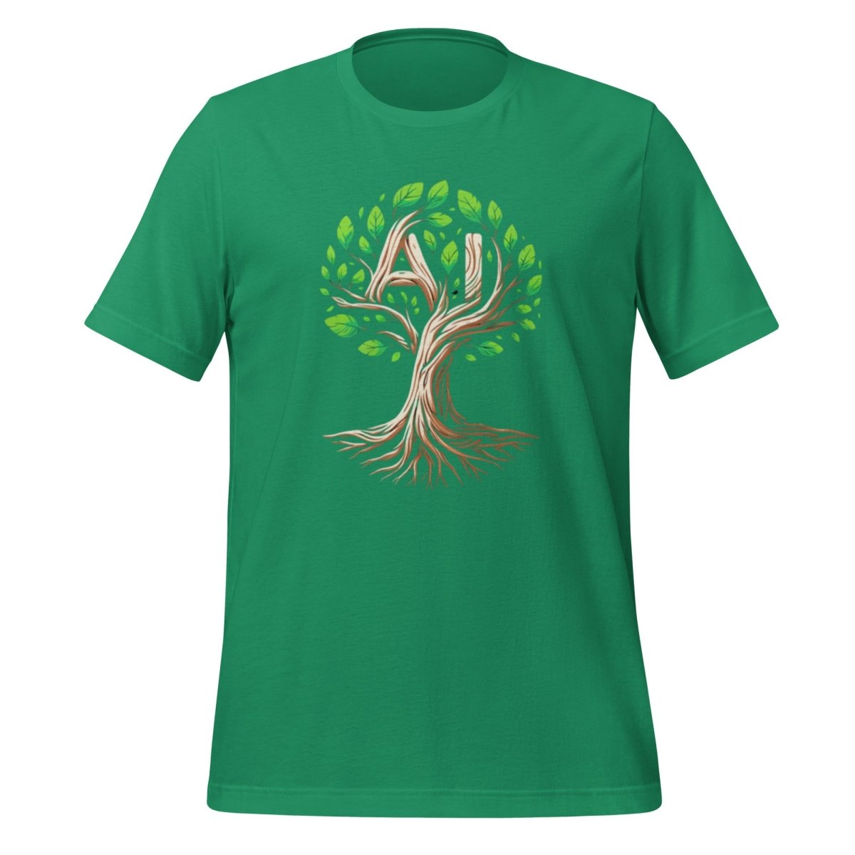 Branch out in style with our AI Tree Tshirt, a unisex must-have for any tech aficionado! This unique tee features a beautifully crafted tree, its branches and leaves intricately designed to resemble "AI", symbolizing the organic integration of nature and technology. Made with high-quality, soft fabric, it ensures comfort and durability, making it perfect for long coding sessions or casual outings with fellow tech enthusiasts. Whether you're a programmer, AI researcher, or just a lover of smart, creative attire, this Tshirt marries technology with everyday fashion seamlessly.
