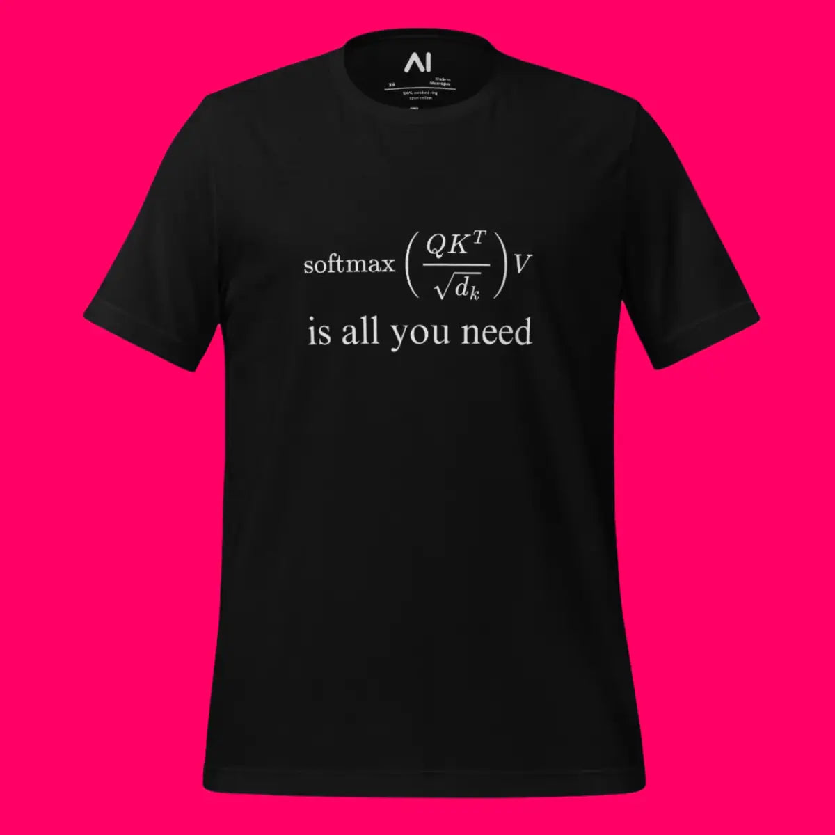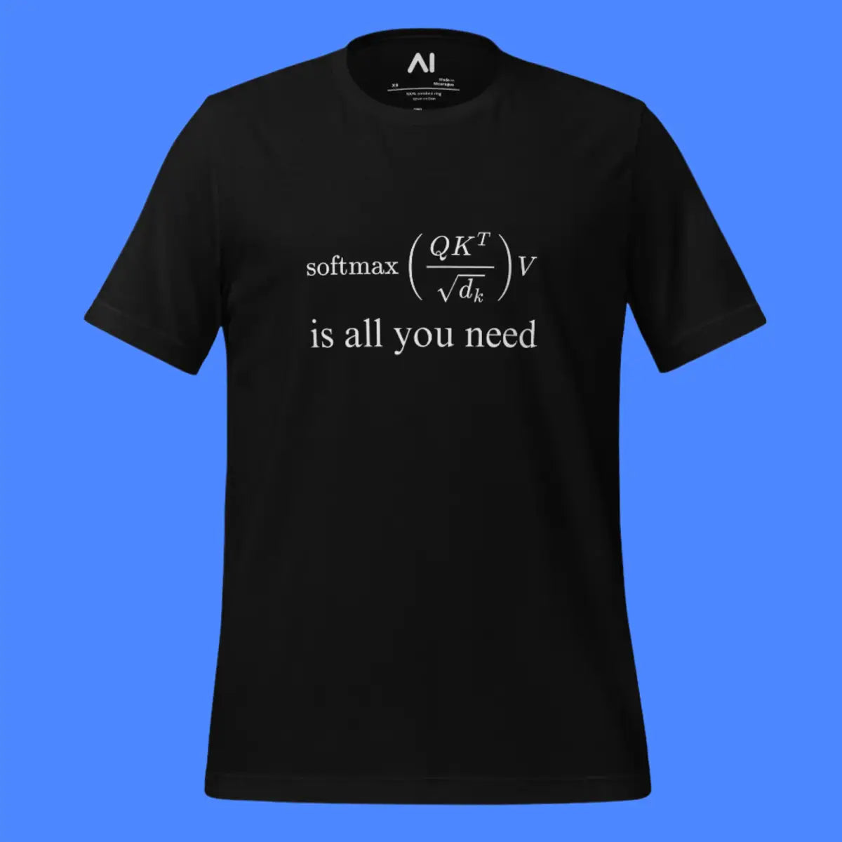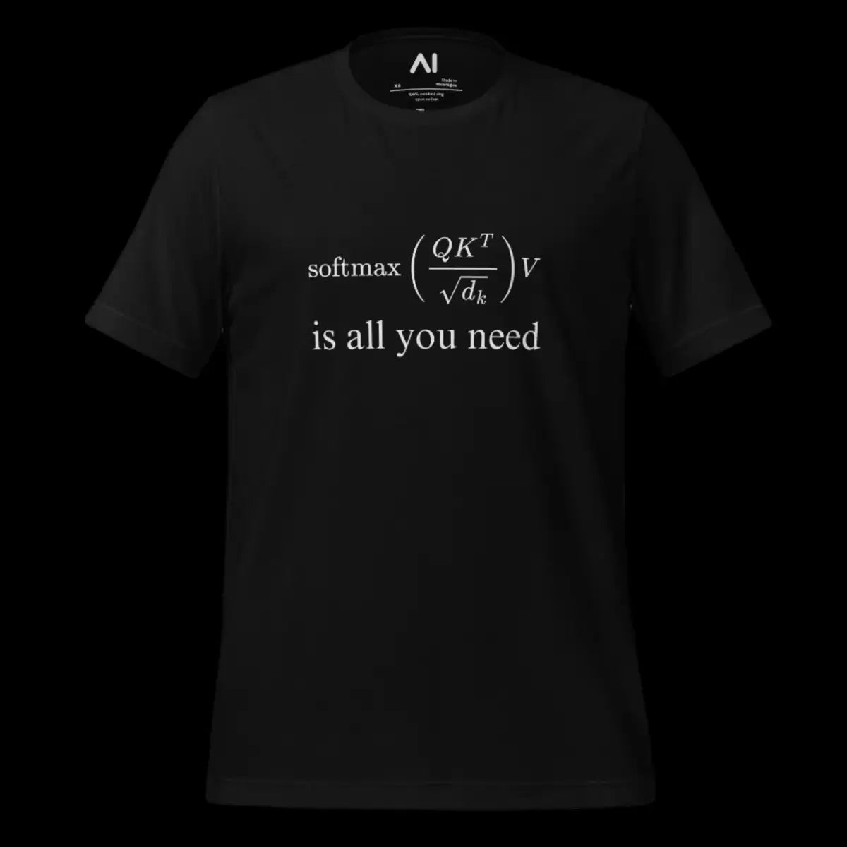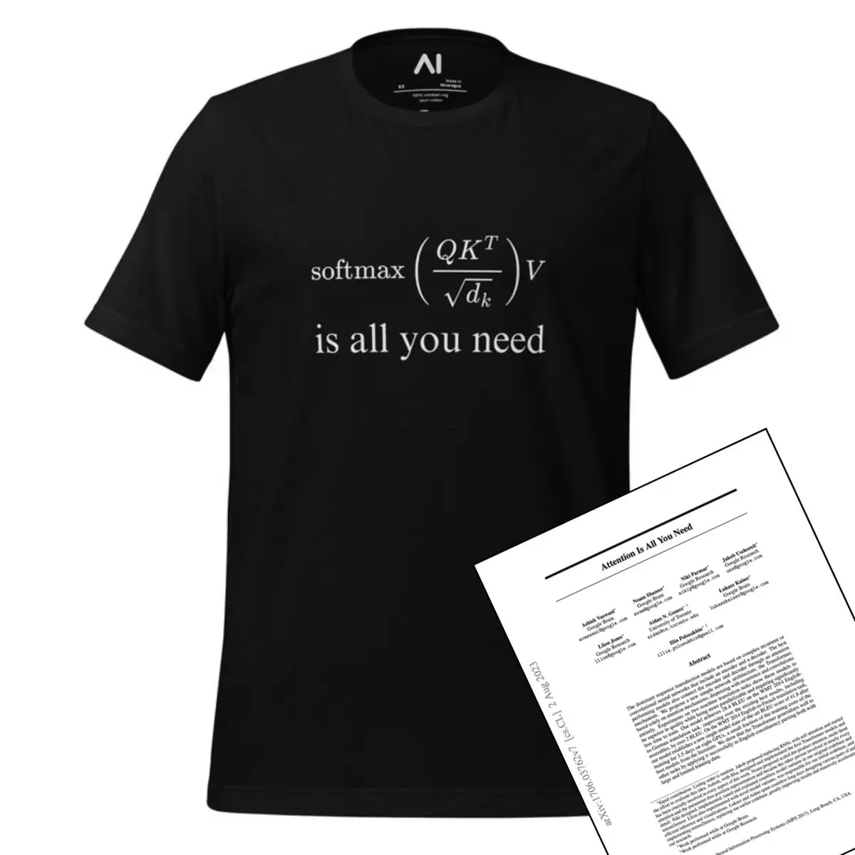 Das Attention is All You Need Tshirt ist für Fans von Deep Learning und hochmodernen KI-Technologien konzipiert. Dieses stylische Unisex-Tshirt ist eine Hommage an den transformativen Aufmerksamkeitsmechanismus im Herzen moderner neuronaler Netzwerke. Es besteht aus 100% gekämmter und ringgesponnener Baumwolle (mit melierten Farben, die Polyester enthalten), ist weich und leicht und bietet Komfort und eine schmeichelhafte Passform für alle Körpertypen. Dieses Tshirt ist in einer breiten Farbpalette erhältlich und kombiniert lässigen Stil mit einem Hauch intellektueller Raffinesse, wodurch es sich sowohl für den Alltag als auch für technisch orientierte Veranstaltungen perfekt eignet.