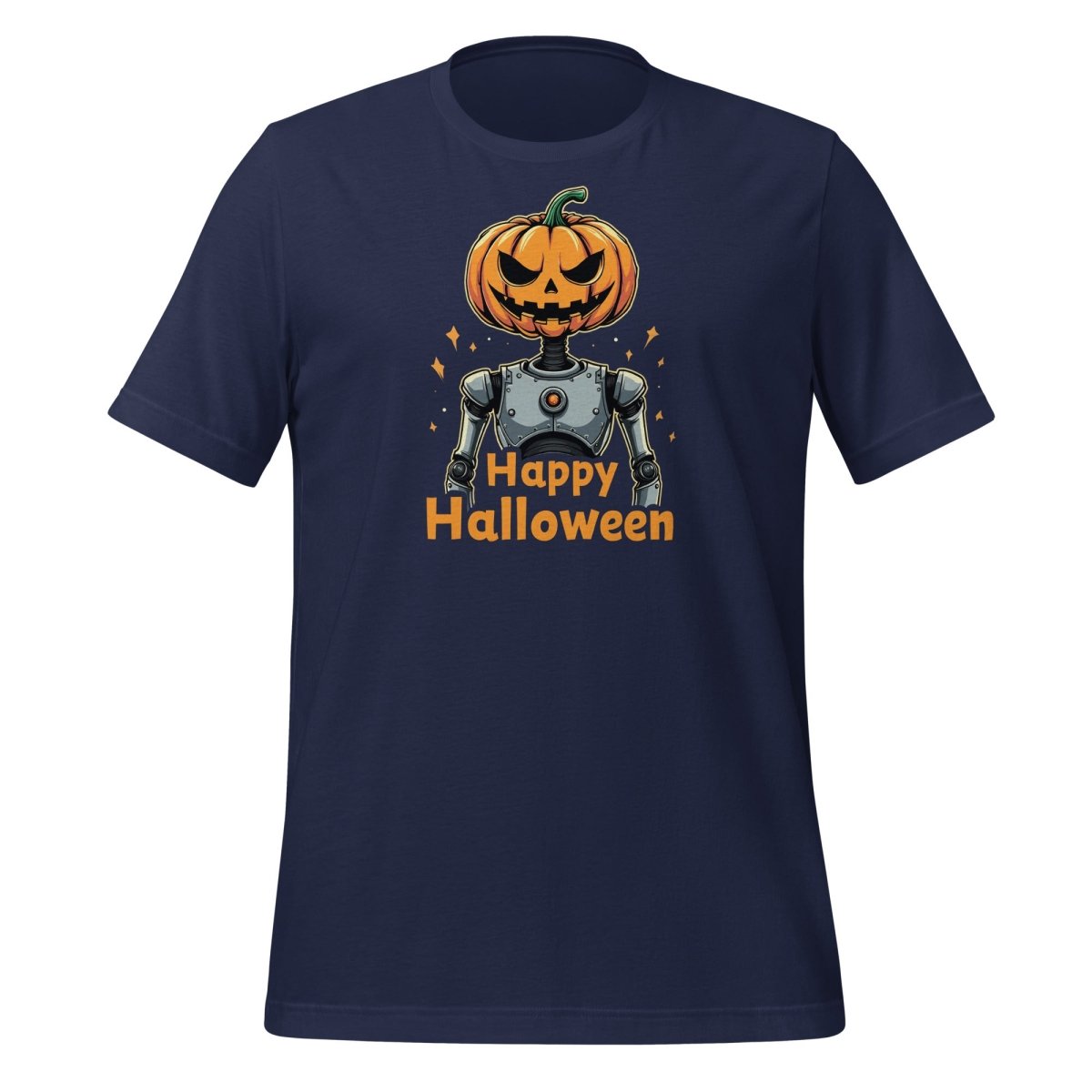 Happy Halloween Robot with Pumpkin Head T-Shirt 3 (Unisex) 🎃