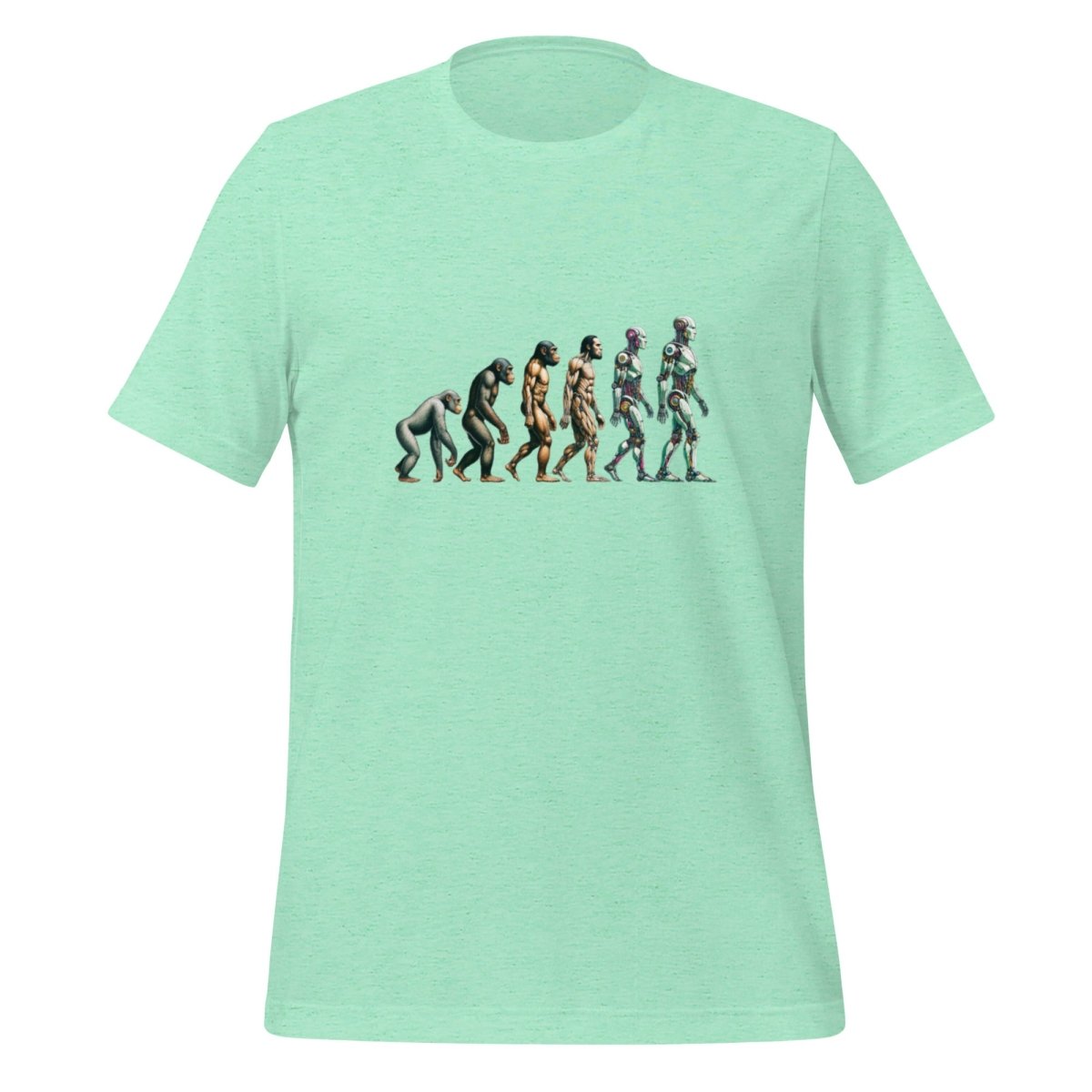 Embrace the remarkable journey from flesh to silicon with the Human Evolution to Robot Tshirt 2. This awe-inspiring design captures the evolution of mankind into a futuristic robotic era, mapping our ascent from primitive beginnings to a technologically advanced future. Crafted for comfort and style, this unisex tee is perfect for any AI enthusiast or tech geek who loves to flaunt their passion for the merging of humans and technology. Whether you're coding at a hackathon, attending a con, or just hanging out, this shirt is sure to spark conversations and turn heads.