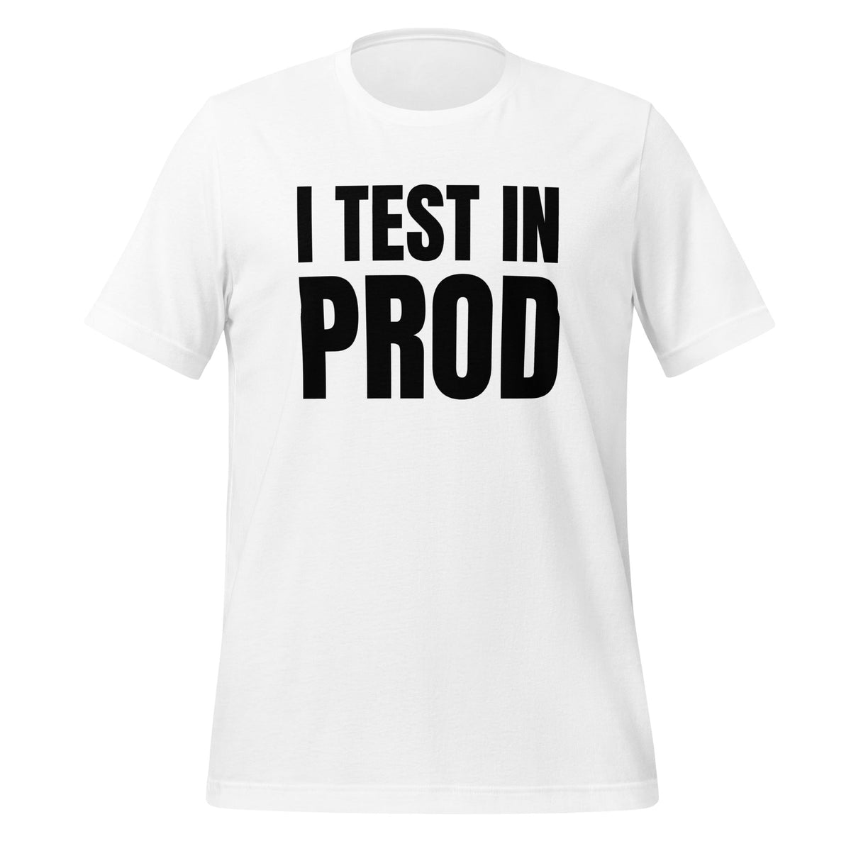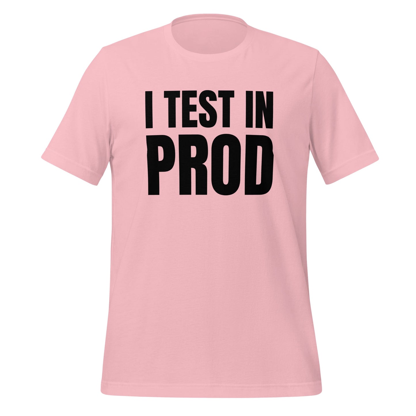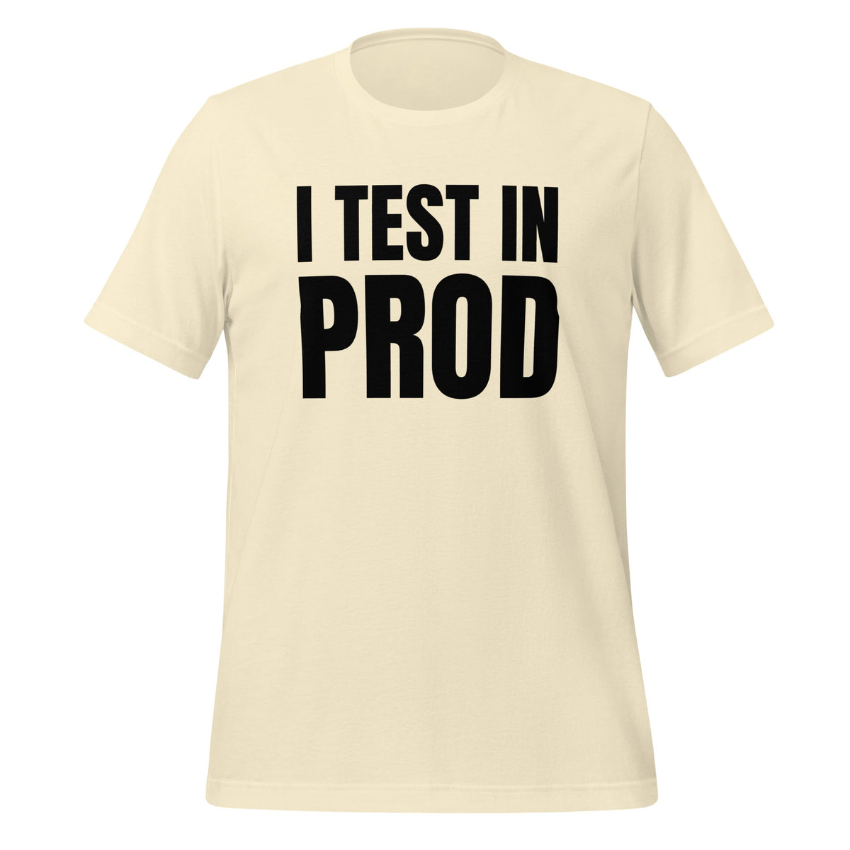 This Black I Test in Prod T-Shirt is an ideal pick for those who appreciate a blend of humor and boldness in tech culture. The shirt’s graphic, 'I TEST IN PROD,' significantly appeals to developers and tech enthusiasts who enjoy a light-hearted take on their work approach.