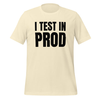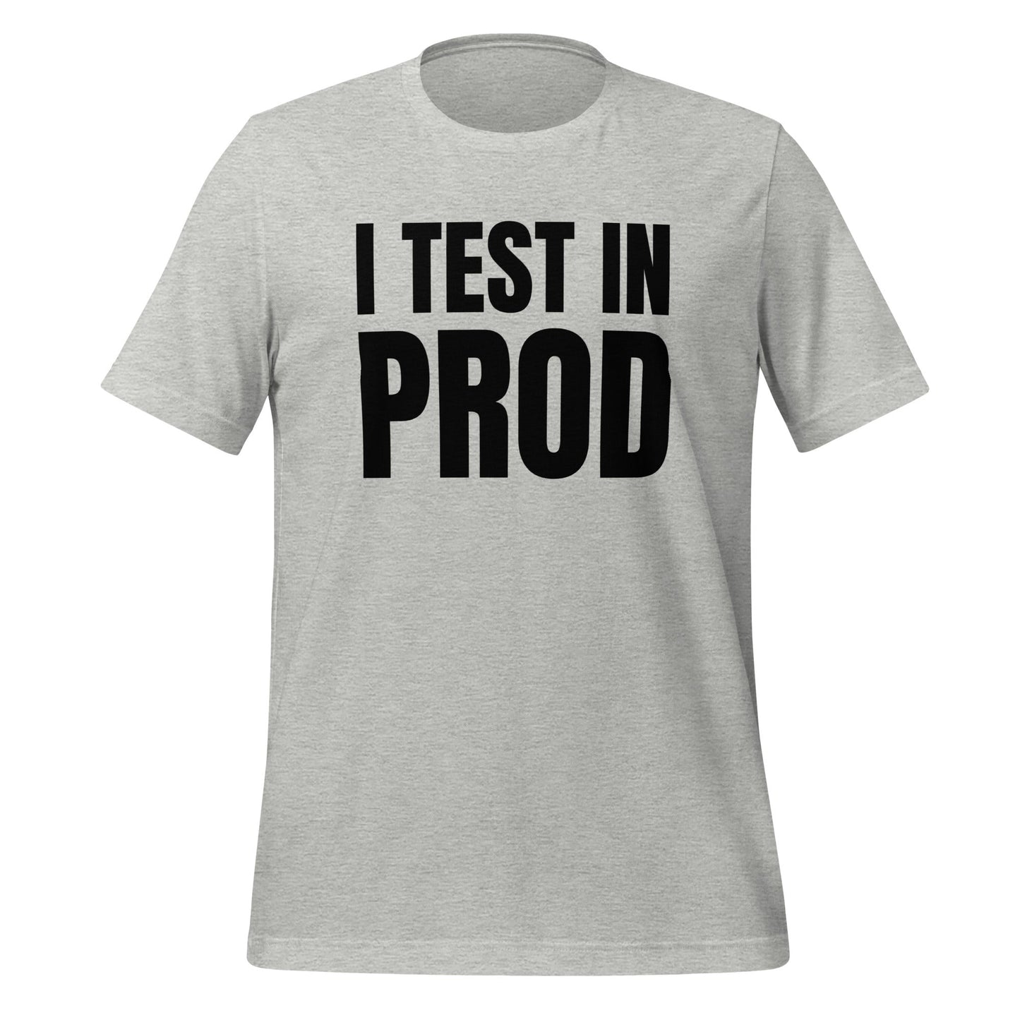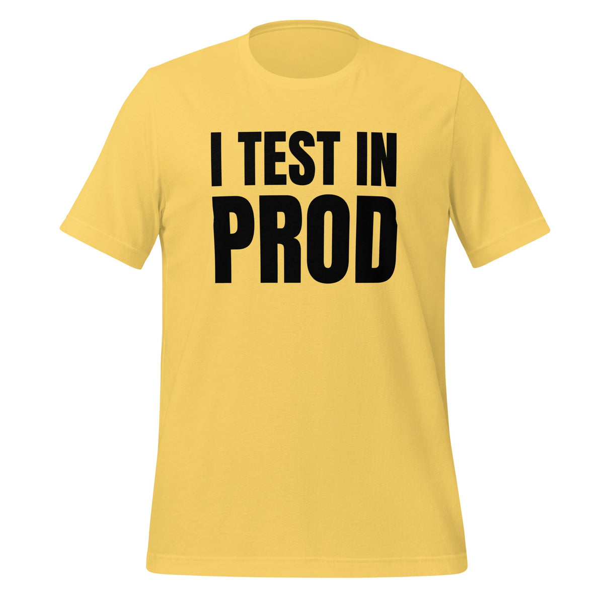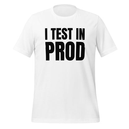 This Black I Test in Prod T-Shirt is an ideal pick for those who appreciate a blend of humor and boldness in tech culture. The shirt’s graphic, 'I TEST IN PROD,' significantly appeals to developers and tech enthusiasts who enjoy a light-hearted take on their work approach.
