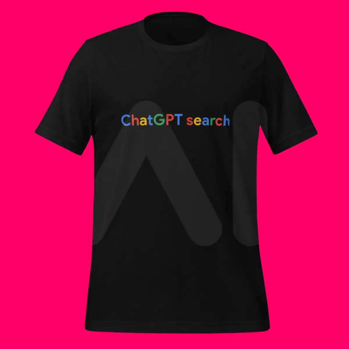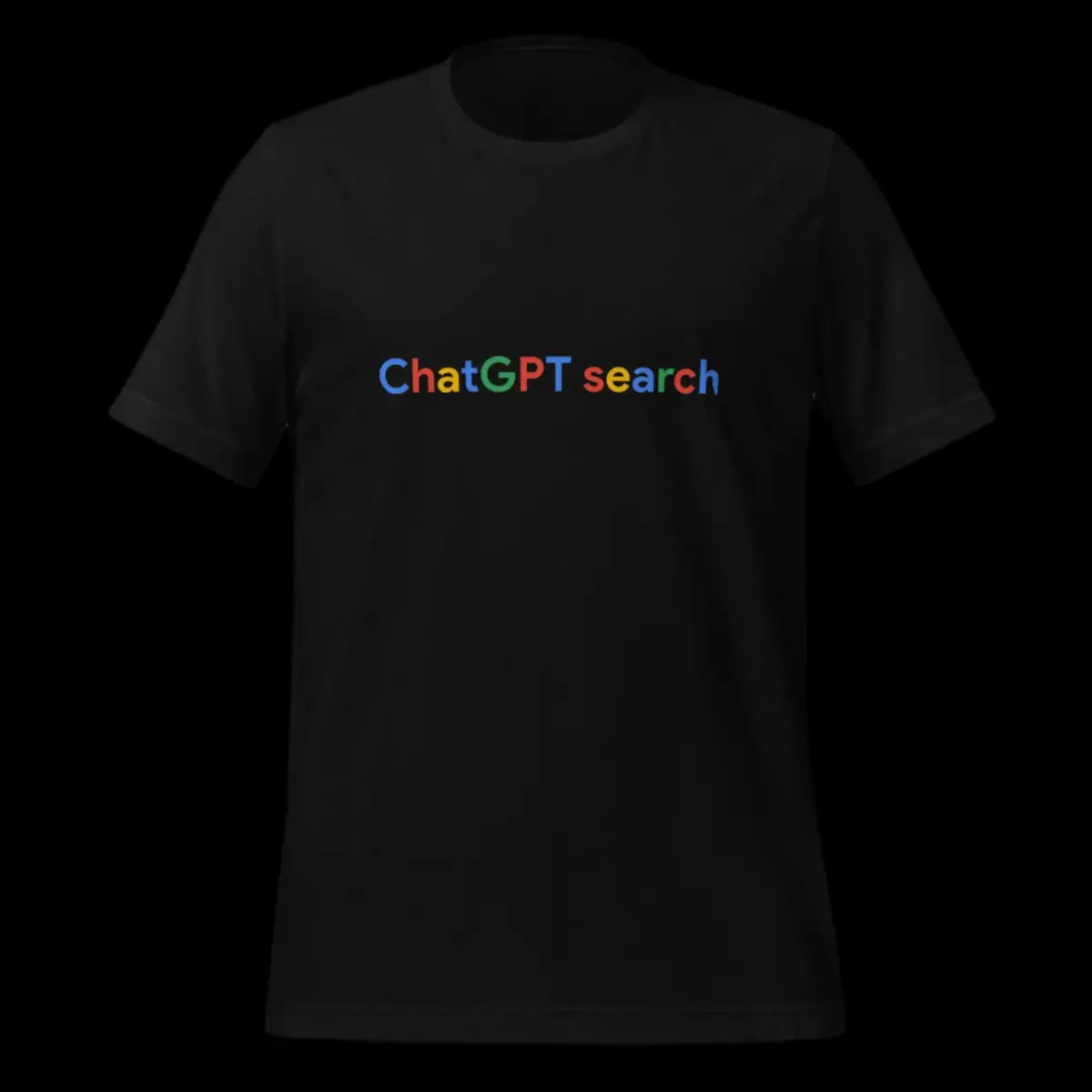 Made from 100% combed and ring-spun cotton, this ChatGPT search Logo T-Shirt is ideal for those seeking a blend of style and comfort in tech-themed apparel. It features a visually appealing ChatGPT search logo on a black background, symbolizing modern AI technology influence in serach. The inclusion of side-seamed construction and shoulder-to-shoulder taping ensures durability and a good fit.