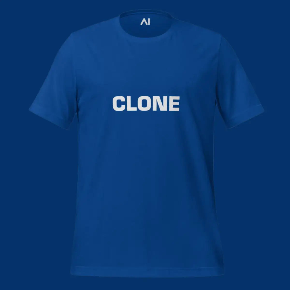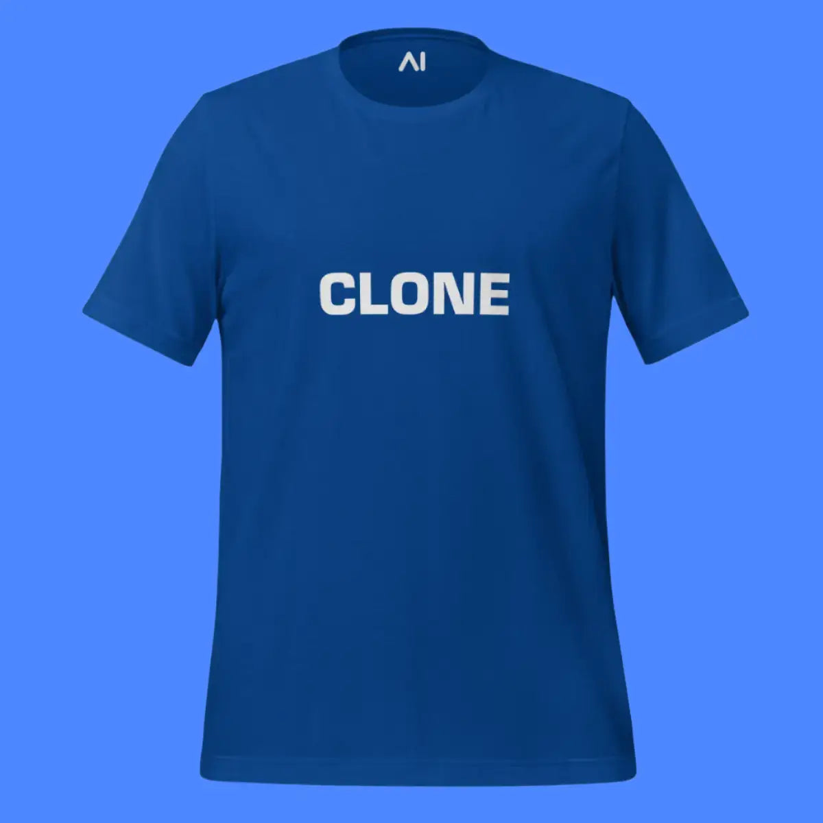 Additional Point: The Clone T-Shirt is a versatile addition to any wardrobe, particularly appealing to those who enjoy displaying their love for technology and AI in a subtle and fashionable manner. Its durable construction promises longevity and ease of maintenance.