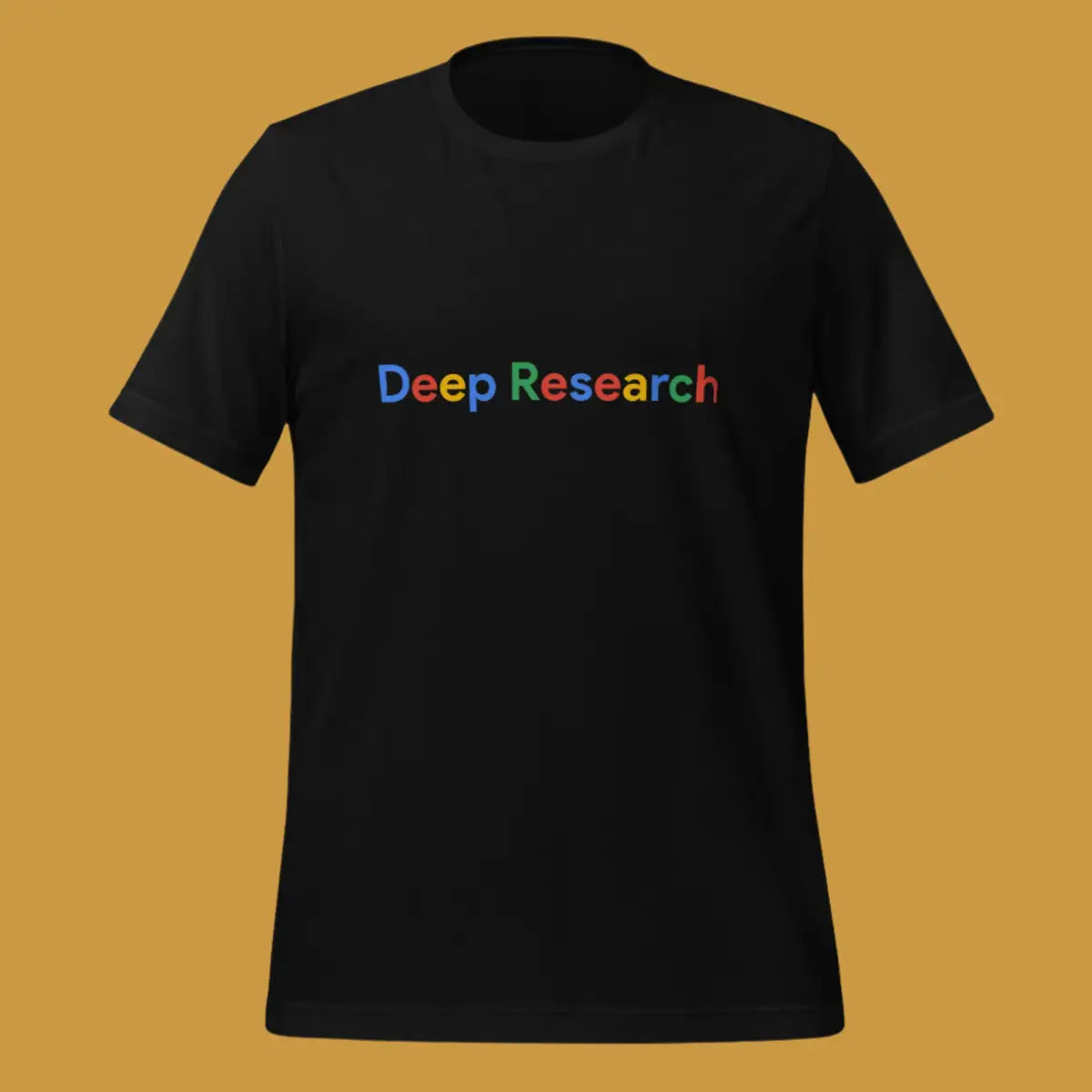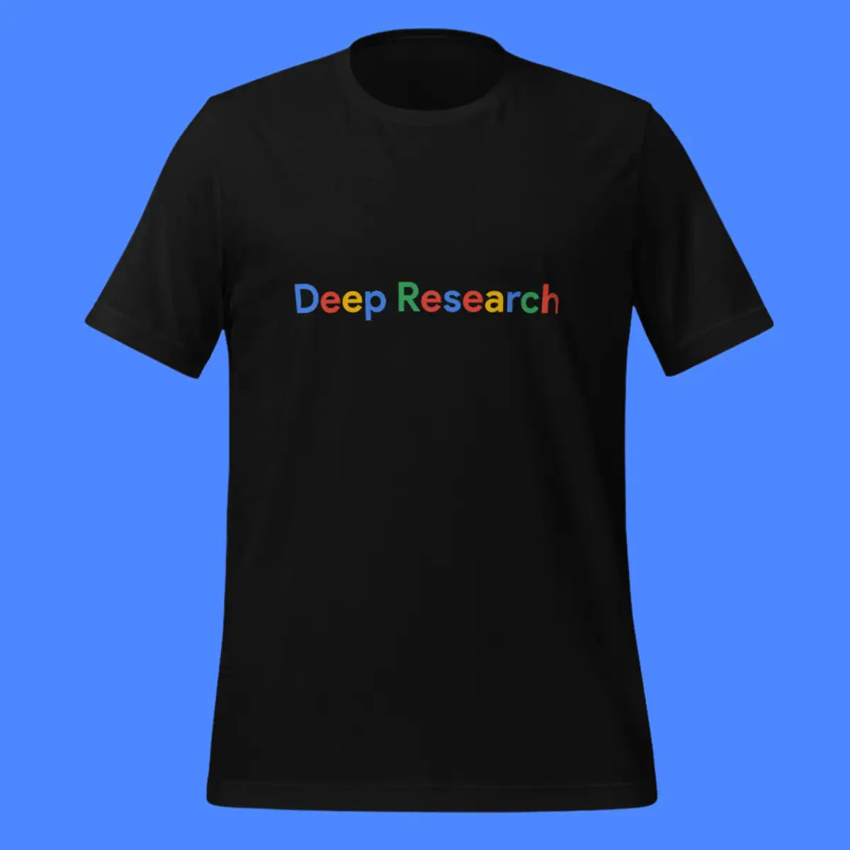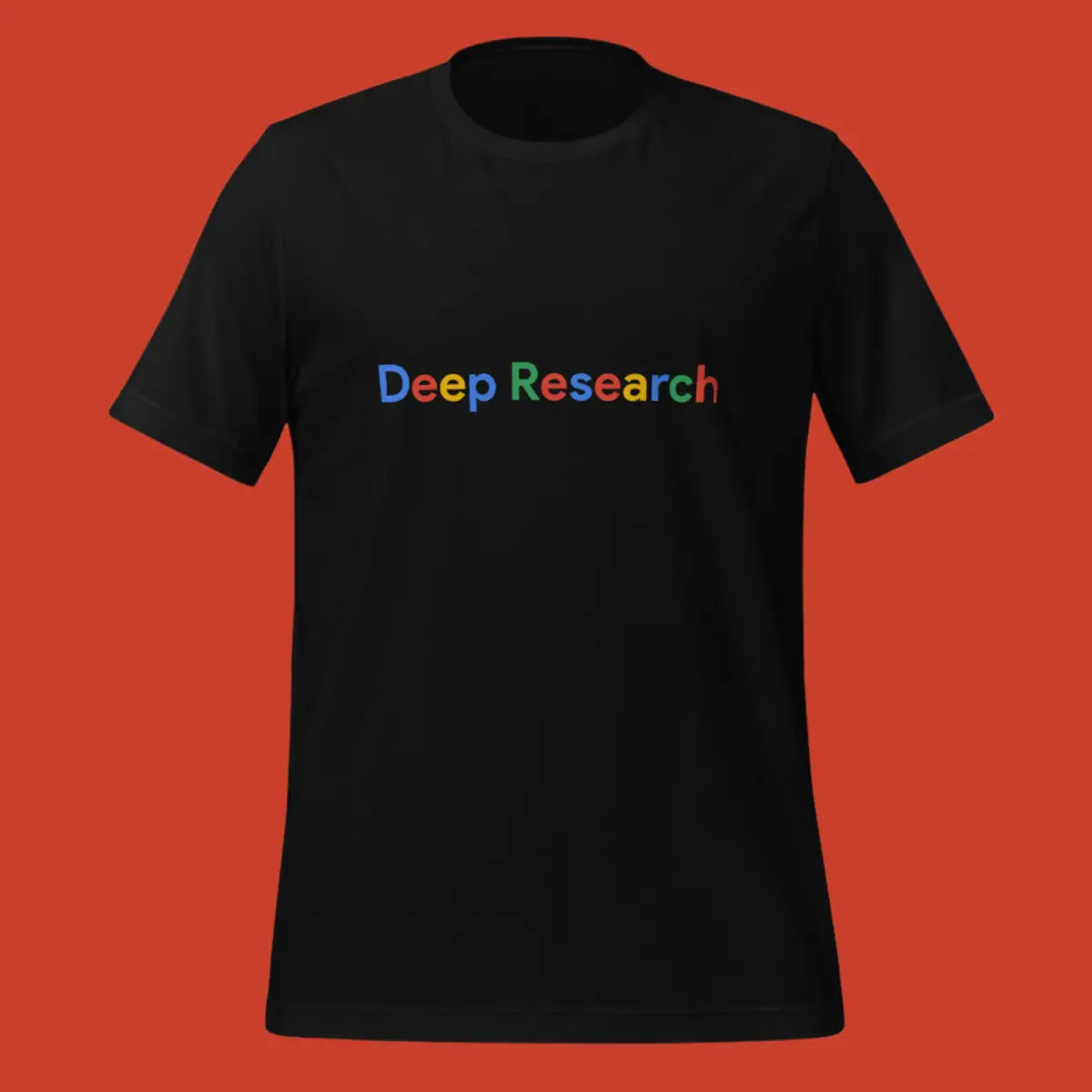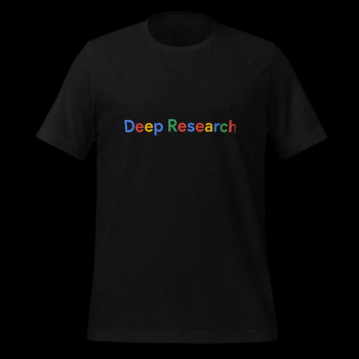 This unisex t-shirt, sporting the Deep Research Search Logo, is an ideal garment for AI enthusiasts and tech aficionados. It features a simple yet impactful design that makes it suitable for both casual and professional settings where AI is a topic of discussion. The shirt is made from 100% combed and ring-spun cotton, while heather colors include polyester, offering durability along with comfort. The fabric weight is 4.2 oz./yd² (142 g/m²), ensuring a light but sturdy feel. It comes pre-shrunk to maintain size and shape after washing, and the side-seamed construction adds to its longevity and fit.