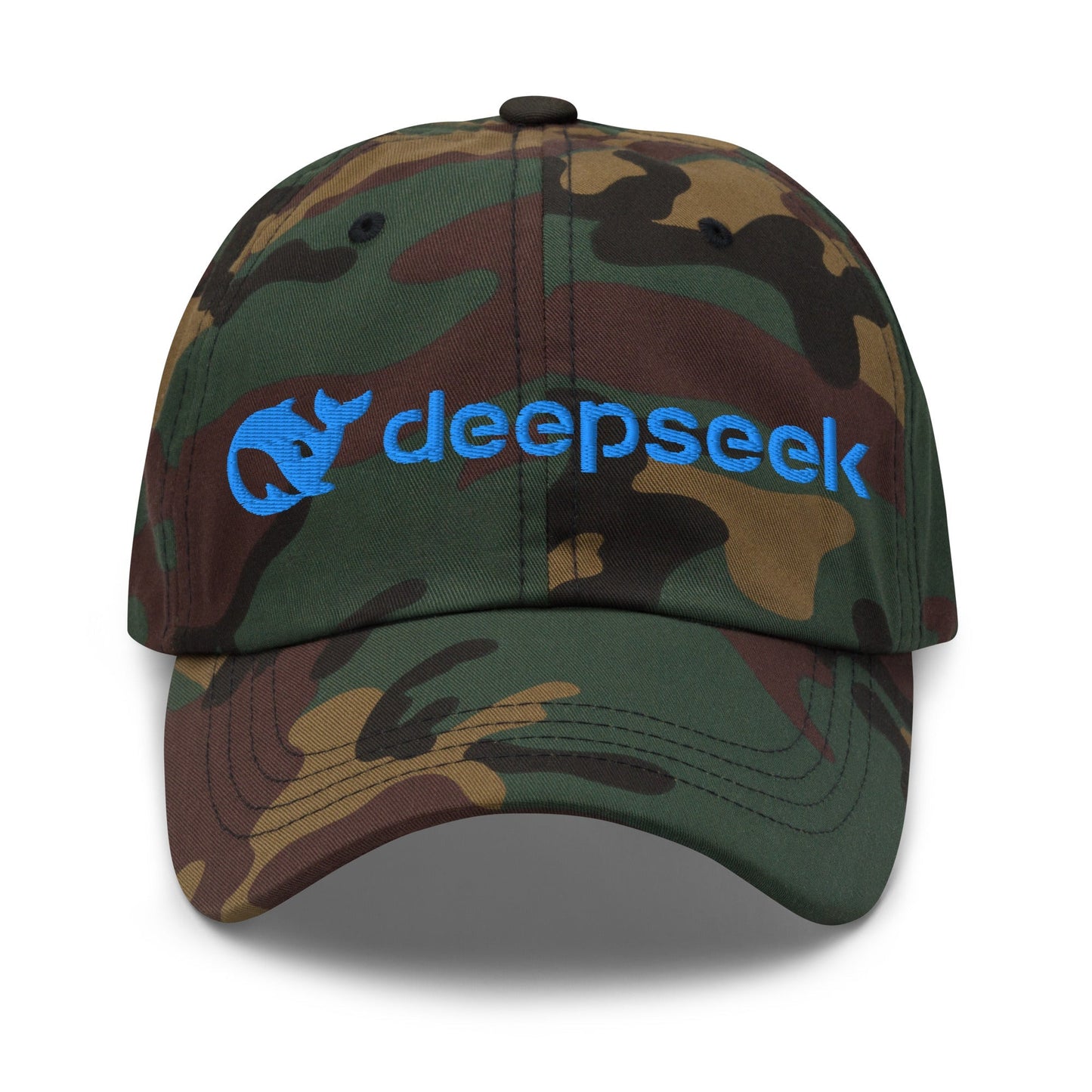 This cap features an embroidered DeepSeek logo at the forefront, emphasizing both style and connection to AI culture. Ideal for AI enthusiasts, data scientists, or tech lovers seeking a casual, yet smart accessory. The cap's base material is 100% chino cotton twill, ensuring breathability and comfort, while the Green Camo variant incorporates 35% chino cotton and 65% polyester, offering a slightly sturdier feel.