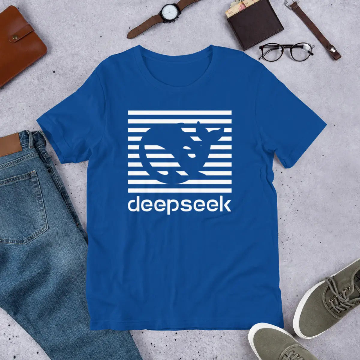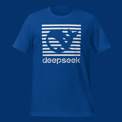 This unisex DeepSeek Stripes T-Shirt, crafted from 100% combed and ring-spun cotton, features a lightweight and comfortable design ideal for tech enthusiasts of all sizes. Its fabric weight is 4.2 oz./yd.² (142 g/m²), balancing durability and breathability. With sizes ranging from XS to 5XL, and featuring widths from 16 ½ inches (XS) to 31 inches (5XL), the t-shirt accommodates various body types. Each shirt is side-seamed to retain its shape, and pre-shrunk fabric ensures consistent sizing after washing. The prominent stripes and bold "deepseek" text meld technology with style, reflecting AI passion with a cool vibe. This t-shirt is optimal for those seeking comfort without sacrificing a stylish look in casual or coding environments. The shirt's technology-inspired design would resonate well with AI and tech aficionados, making it a valuable addition to any wardrobe oriented around technology themes.