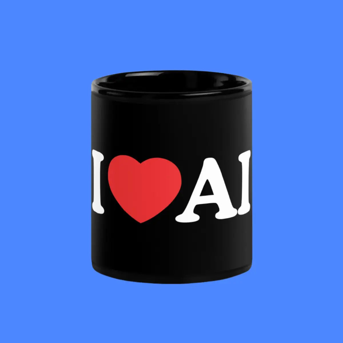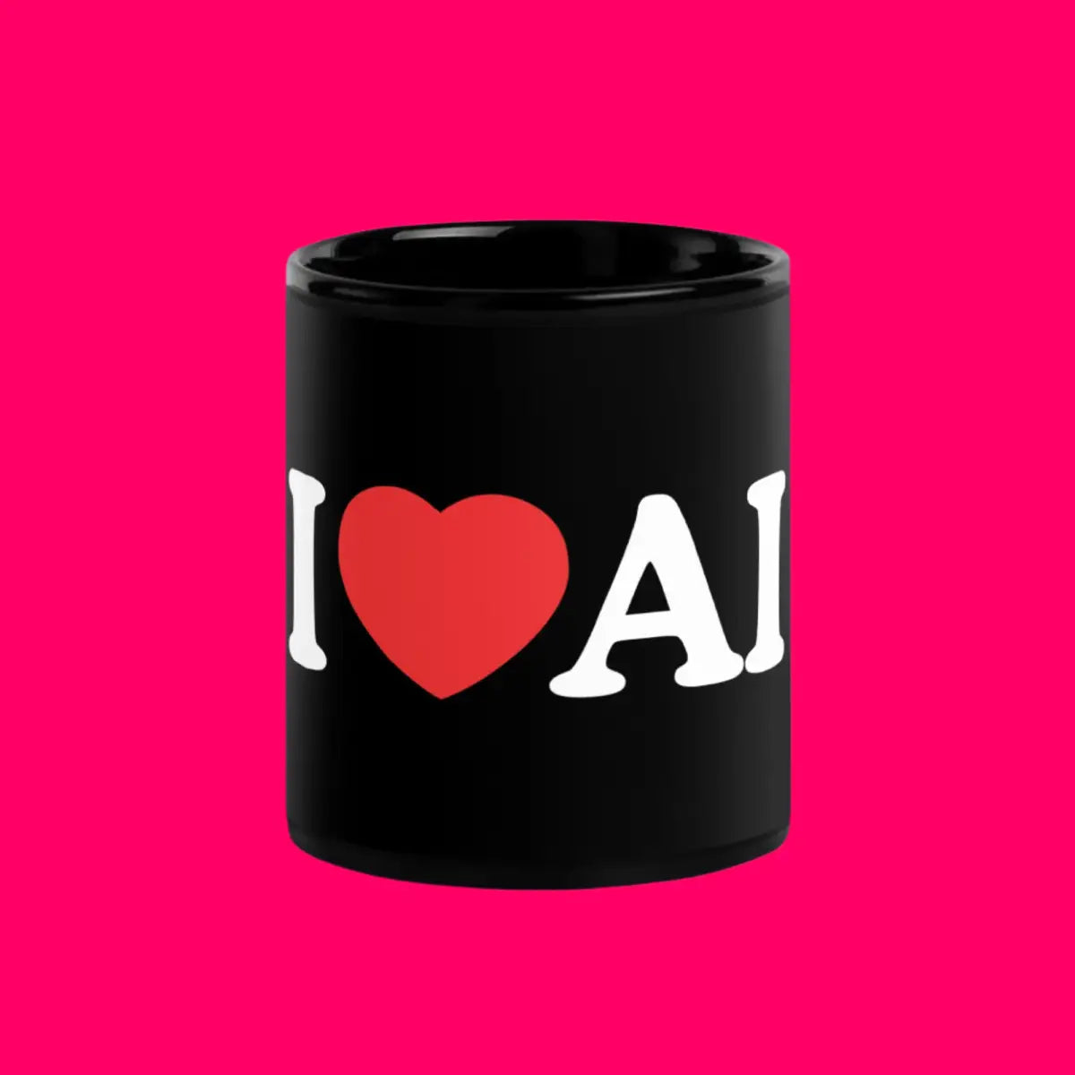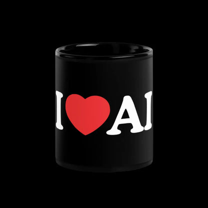 The I Love AI Black Glossy Mug is an ideal selection for those enthusiastic about artificial intelligence. It is crafted from high-quality ceramic and features a polished glossy finish. The design incorporates a vibrant red heart and the phrase 'I Love AI', making it a clear statement piece for AI admirers. This mug is suitable for both home and office environments, providing a functional and spirited addition to any desk or kitchen.