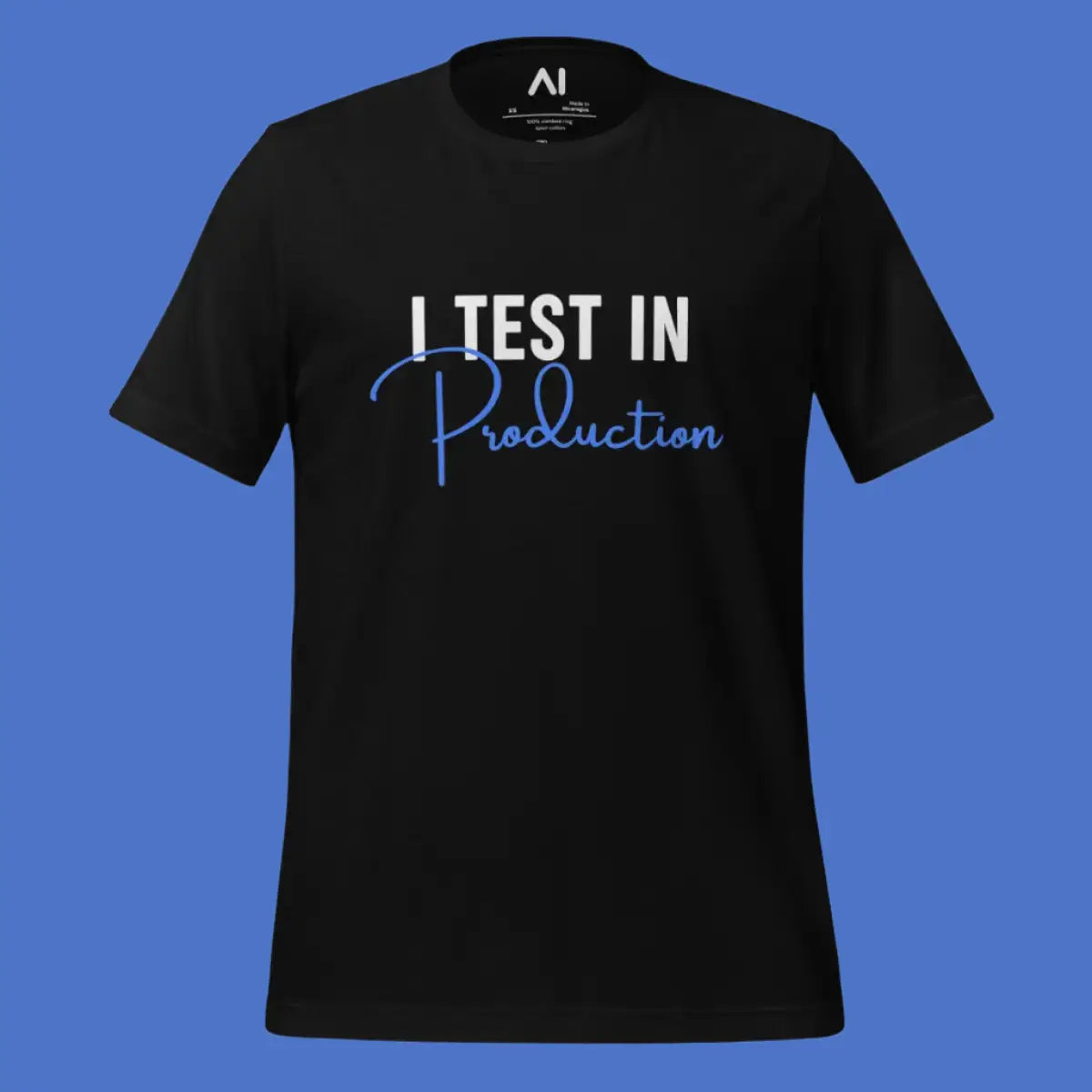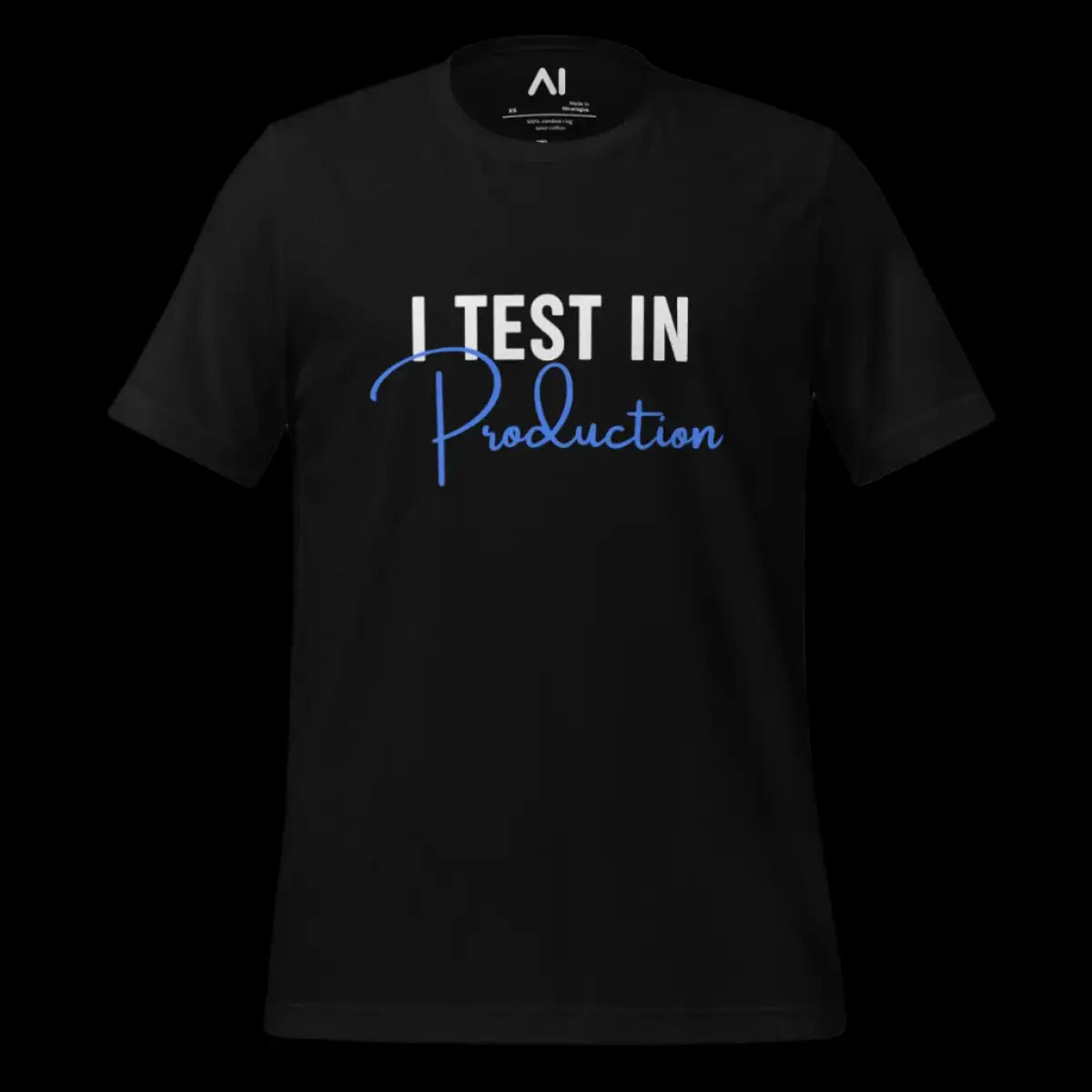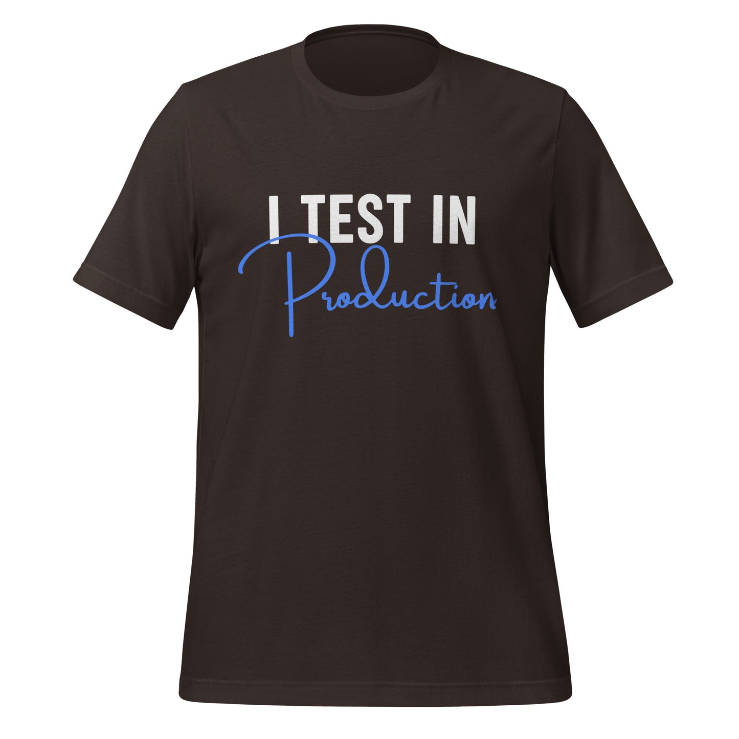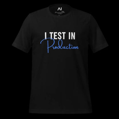 This T-shirt is designed for software enthusiasts who appreciate a touch of humor in their apparel. It features the phrase "I Test in Production," known for sparking conversations and smiles in the tech community. Made with 100% combed and ring-spun cotton, it offers a soft, lightweight feel with the right amount of stretch, ensuring comfort and a flattering fit for all genders.