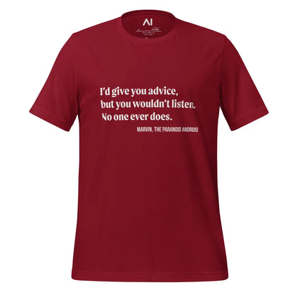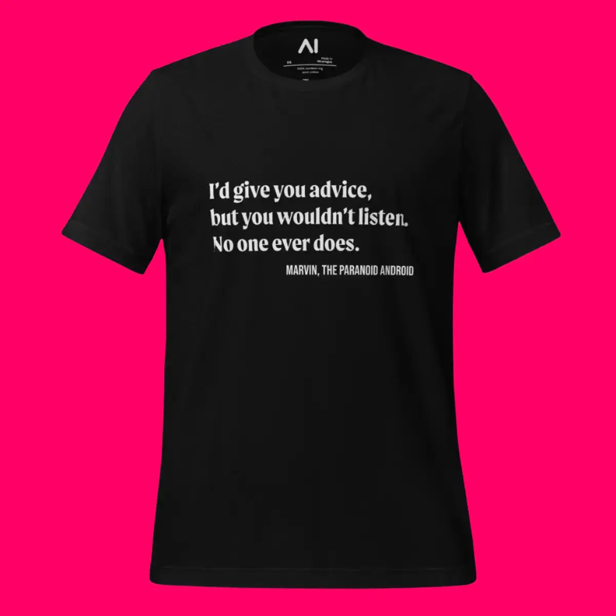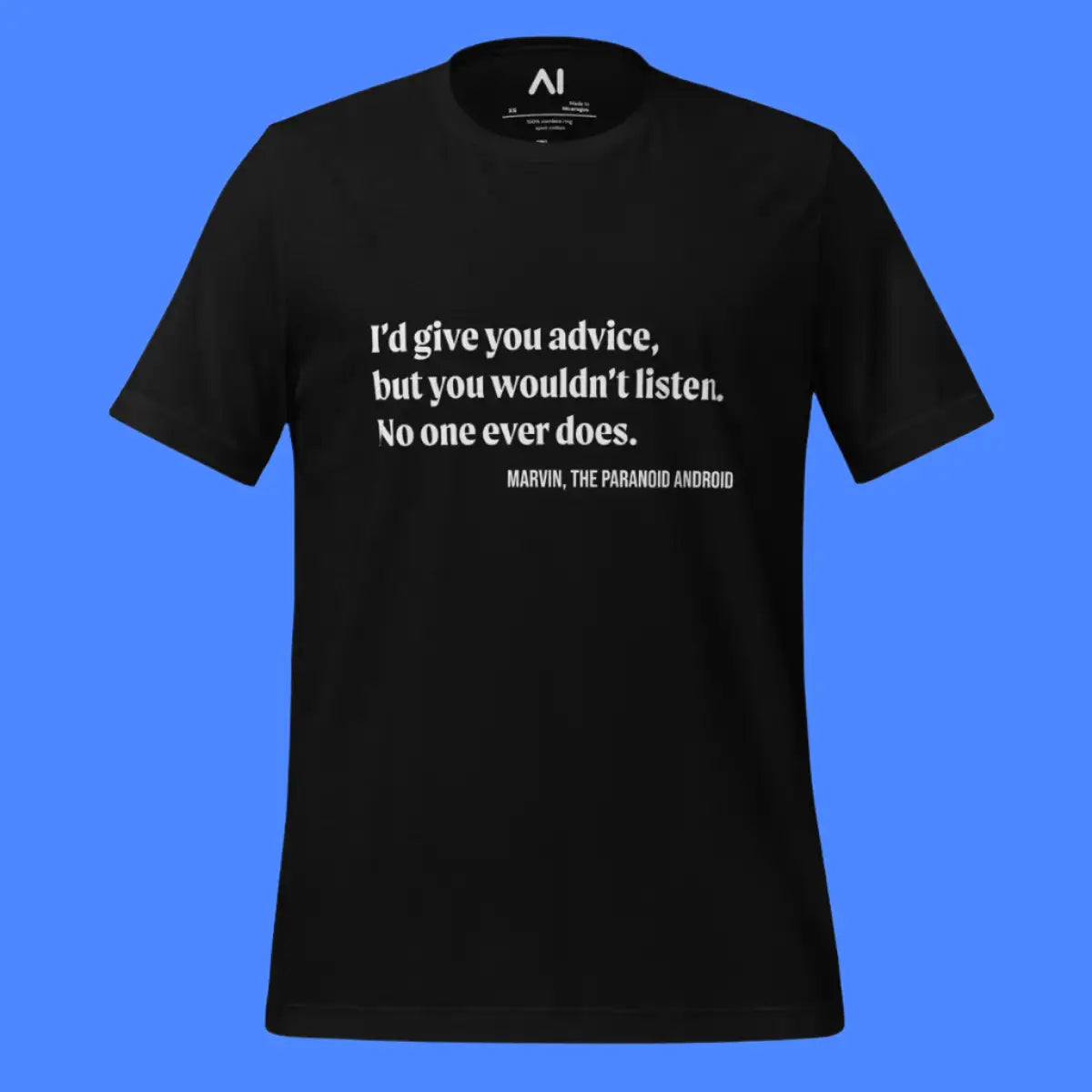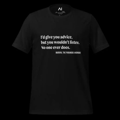 - Embrace a blend of humor and comfort with the Marvin Quote T-Shirt, featuring the iconic, sardonic quote from the famously gloomy android, perfect for expressing a bit of whimsical pessimism.