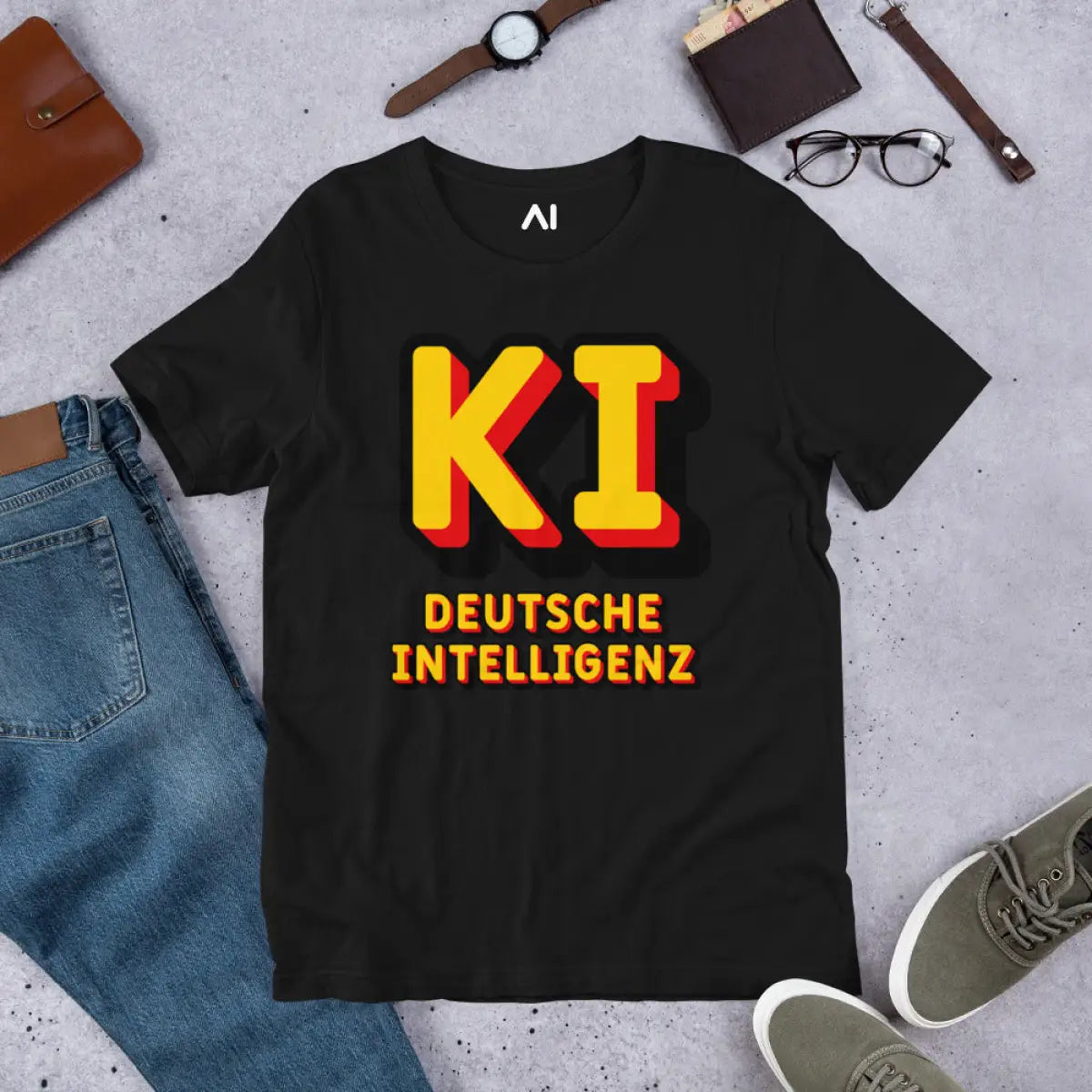 Harness the spirit of German AI ingenuity with the KI Deutsche Intelligenz T-Shirt. This unisex tee epitomizes comfort with a soft and breathable construction, made from 100% combed and ring-spun cotton, with heather colors containing polyester. The fabric weight stands at 4.2 oz./yd², ensuring a light yet durable wear. It features a pre-shrunk fabric and side-seamed construction for a consistent fit, while the shoulder-to-shoulder taping adds to its resilience and shape retention. Designed to cater to the tastes of AI aficionados and tech enthusiasts, this tee showcases a bold, AI-themed graphic that celebrates the advanced technology landscape of Germany.