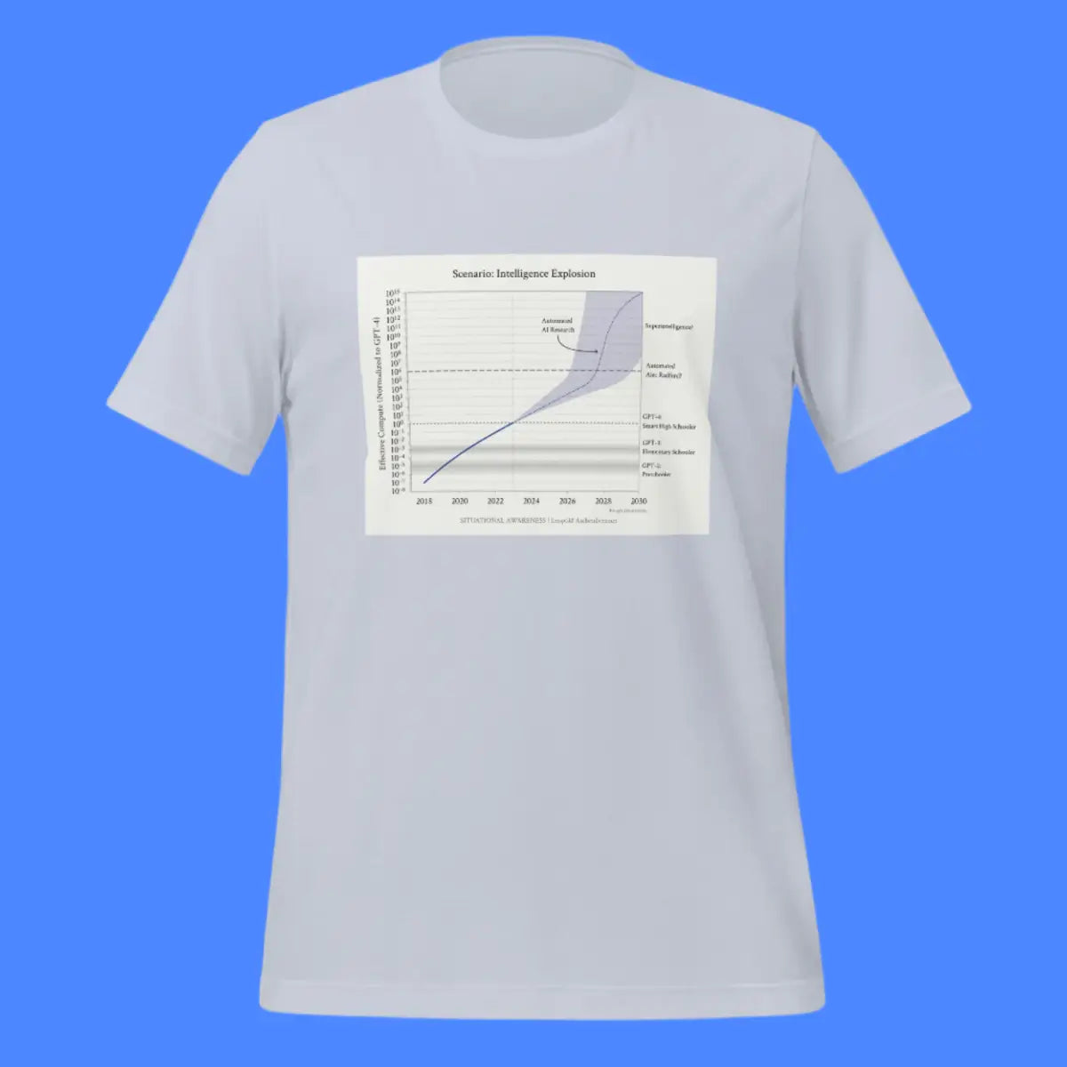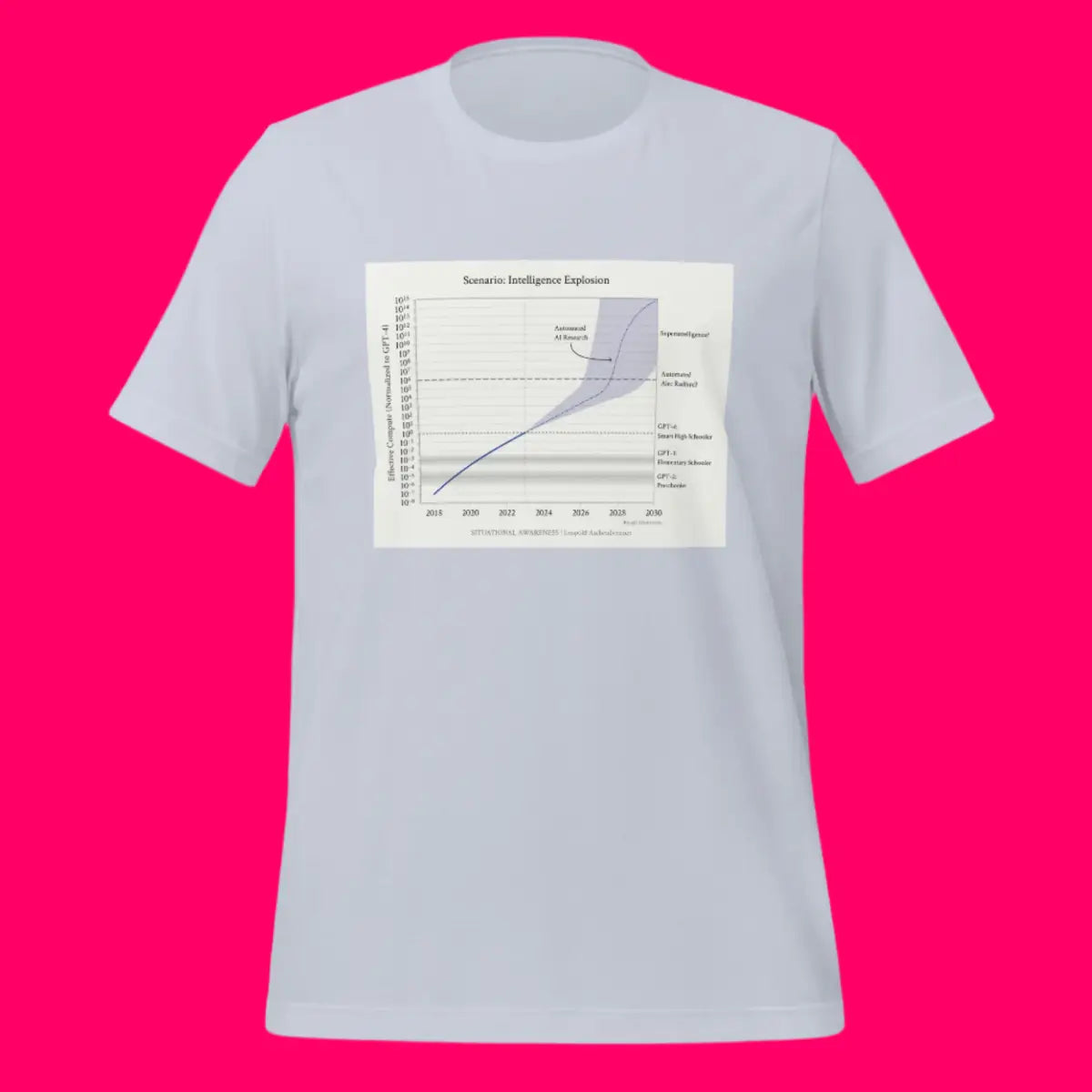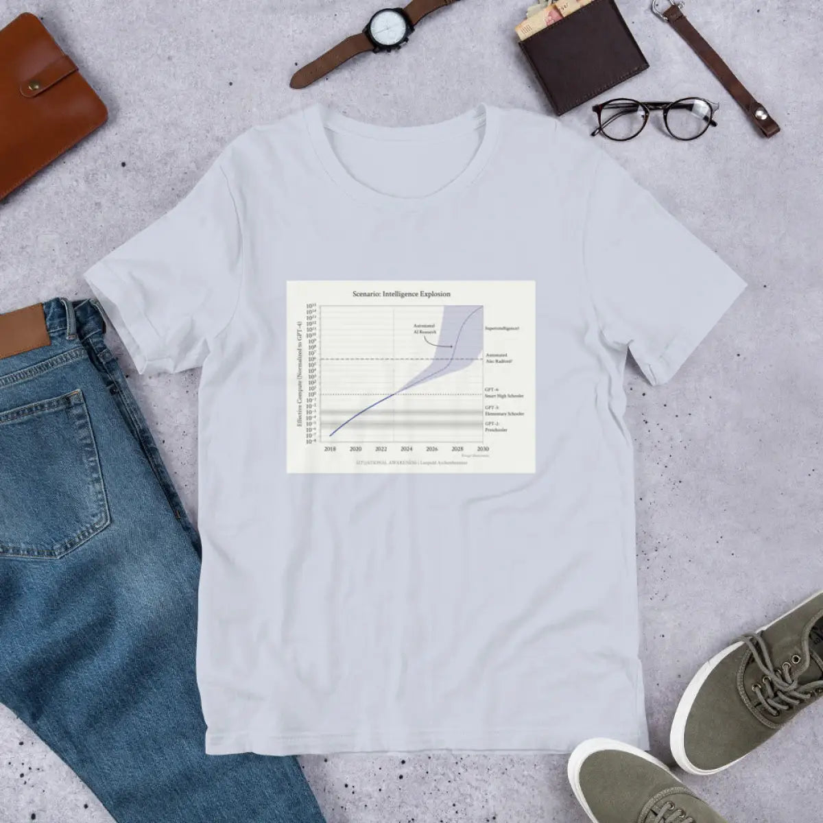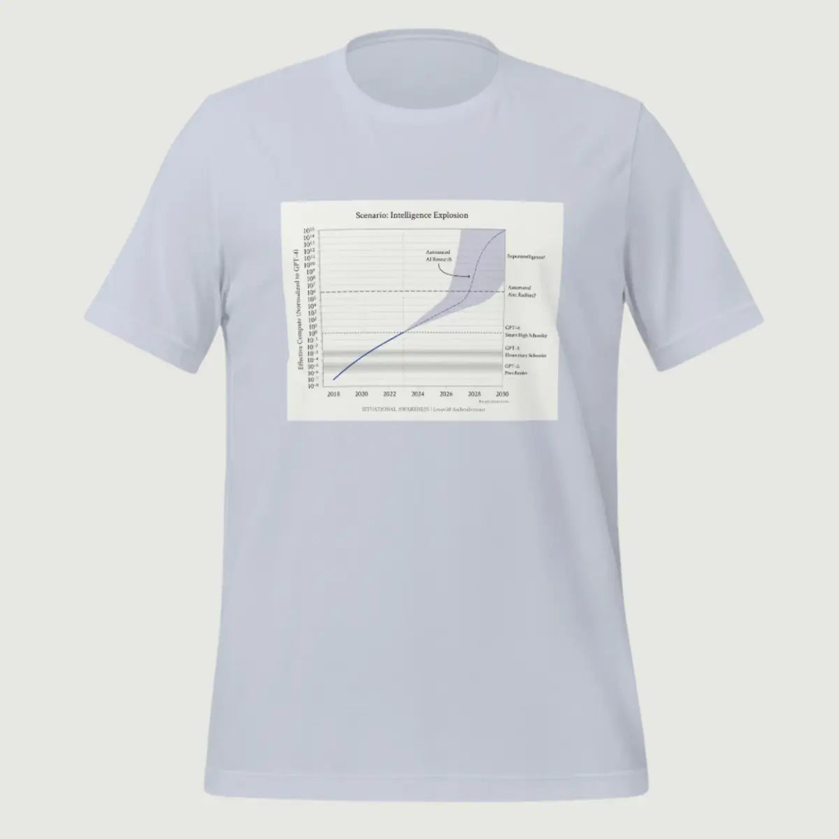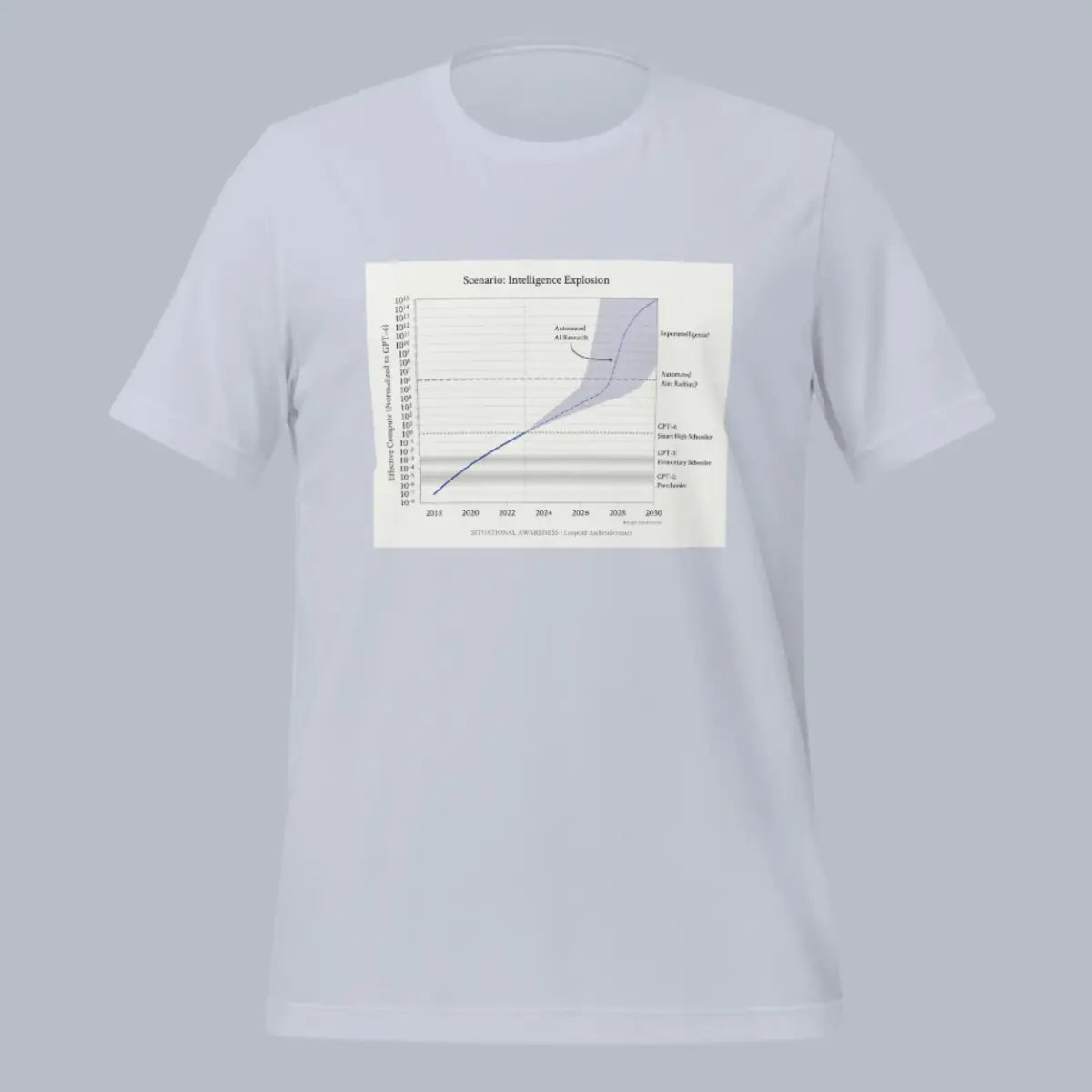 - Inspired by AI researcher Leopold Aschenbrenner, this T-shirt showcases an Intelligence Explosion theme.