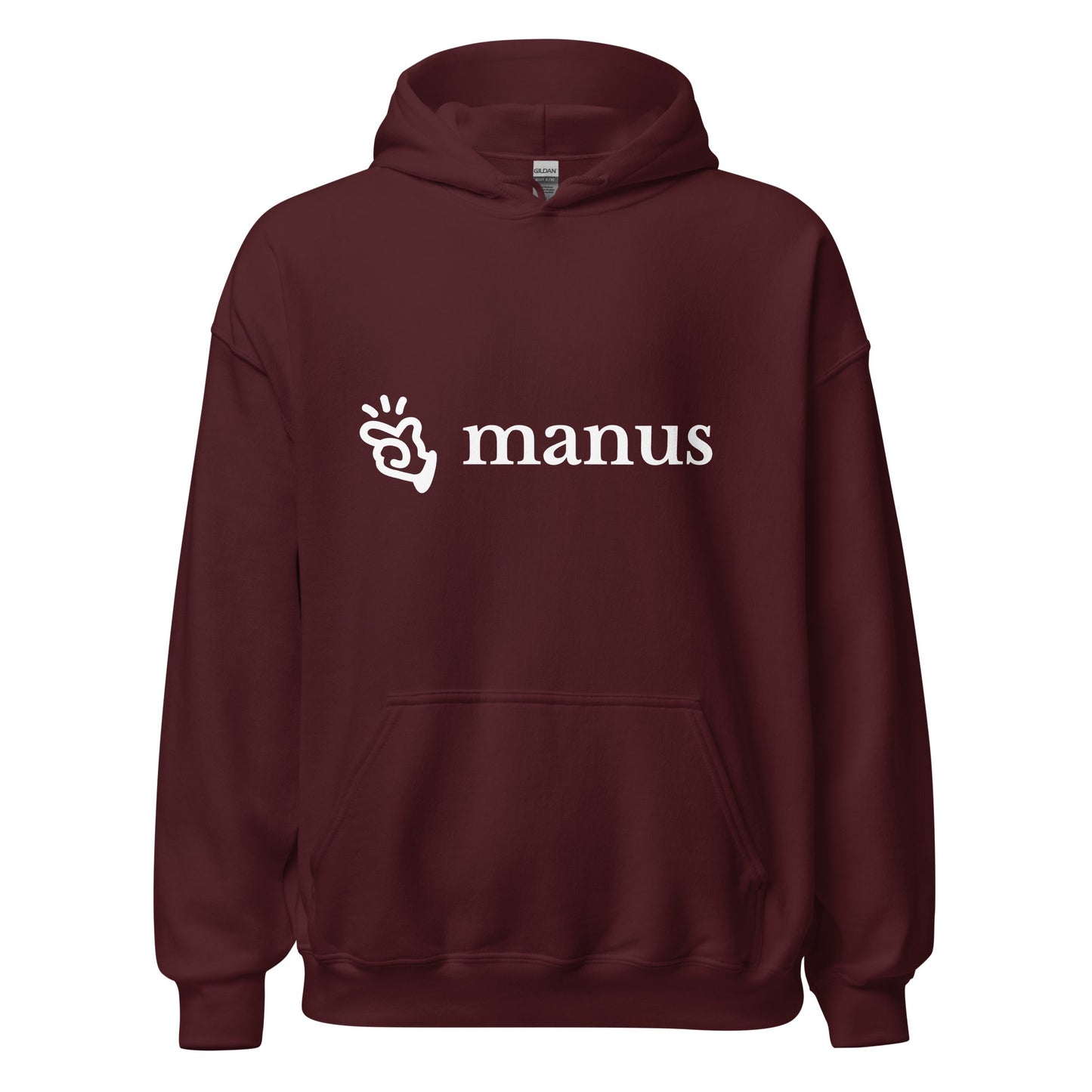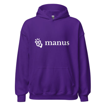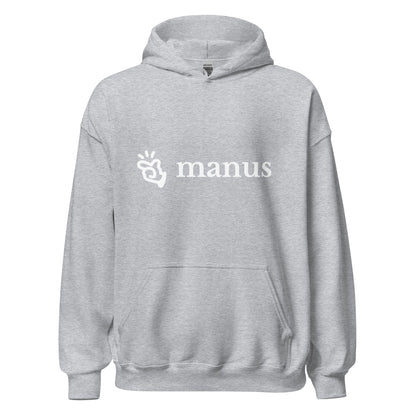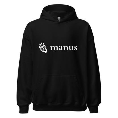 The double-needle stitching on the collar, shoulders, armholes, cuffs, and hem enhance its durability, making it suitable for both tech meet-ups and casual wear. The design is completed with the sleek Manus logo on the front, symbolizing innovation in AI. This hoodie is quarter-turned to avoid a crease down the middle, ensuring it looks great even after multiple washes.
