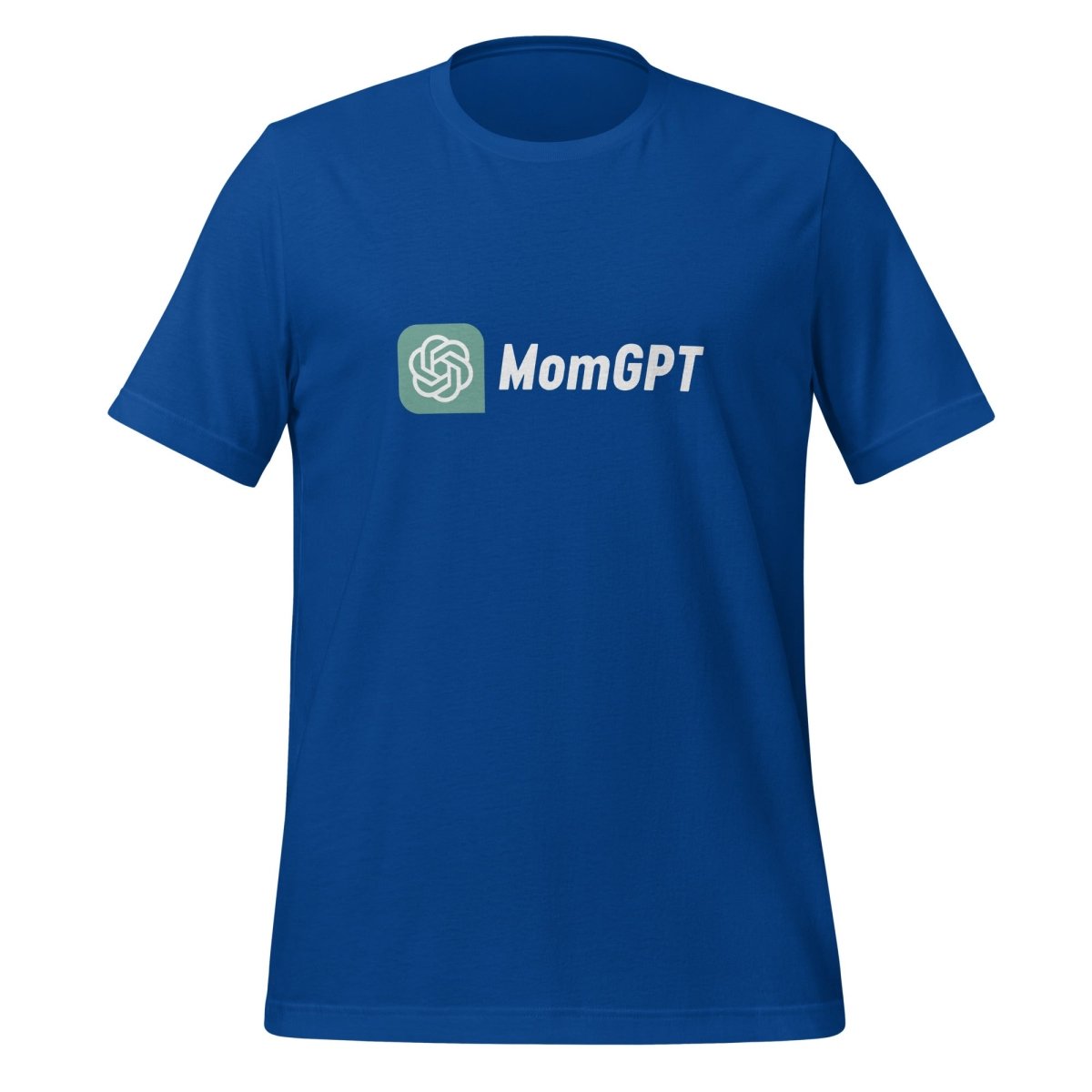 This unisex MomGPT T-Shirt 5 combines a tech-inspired design with everyday comfort, making it an ideal choice for those who appreciate AI and a touch of humor in their attire. It effectively blends nerd-chic aesthetic with practical wearability.