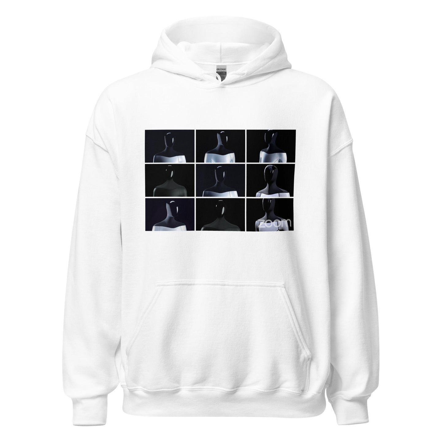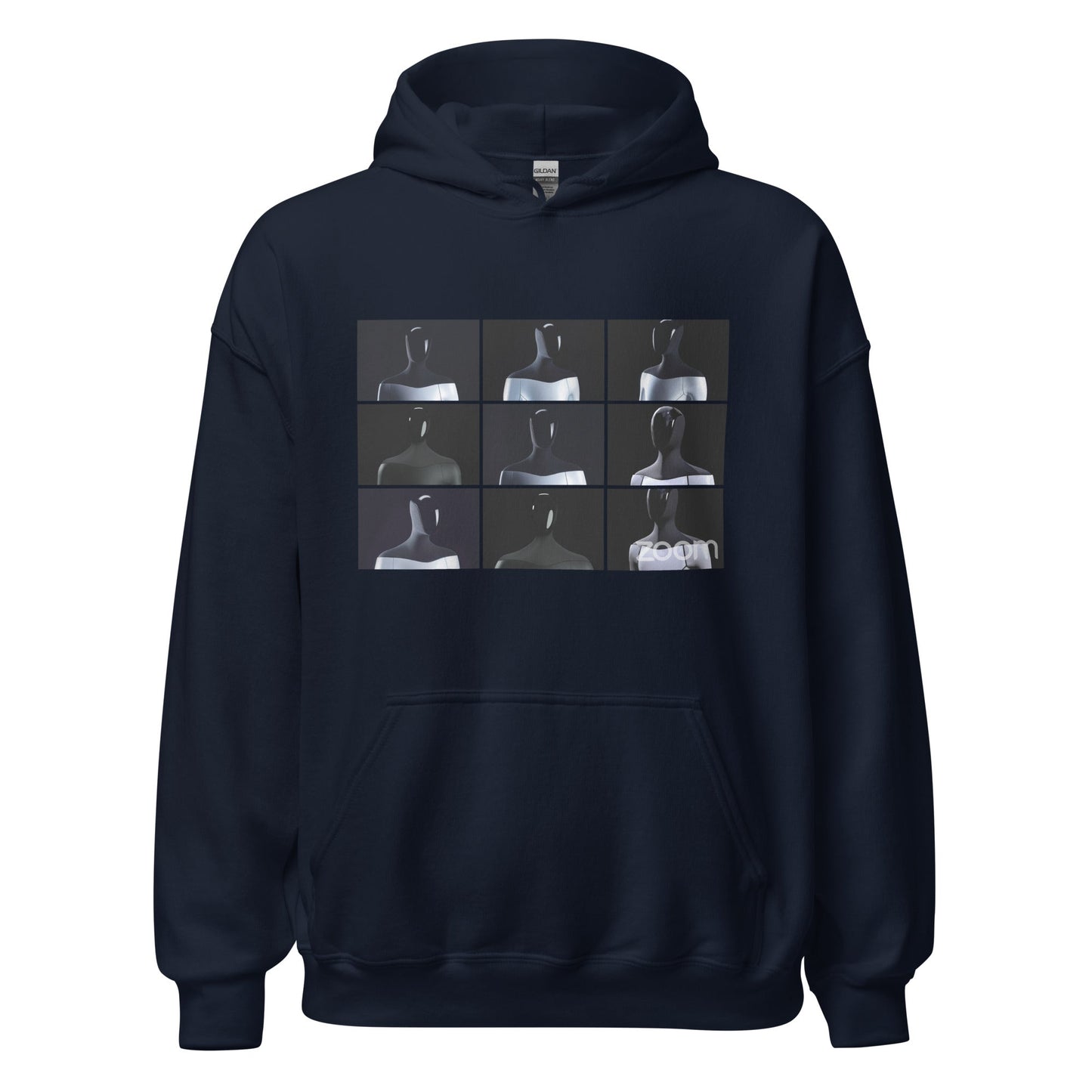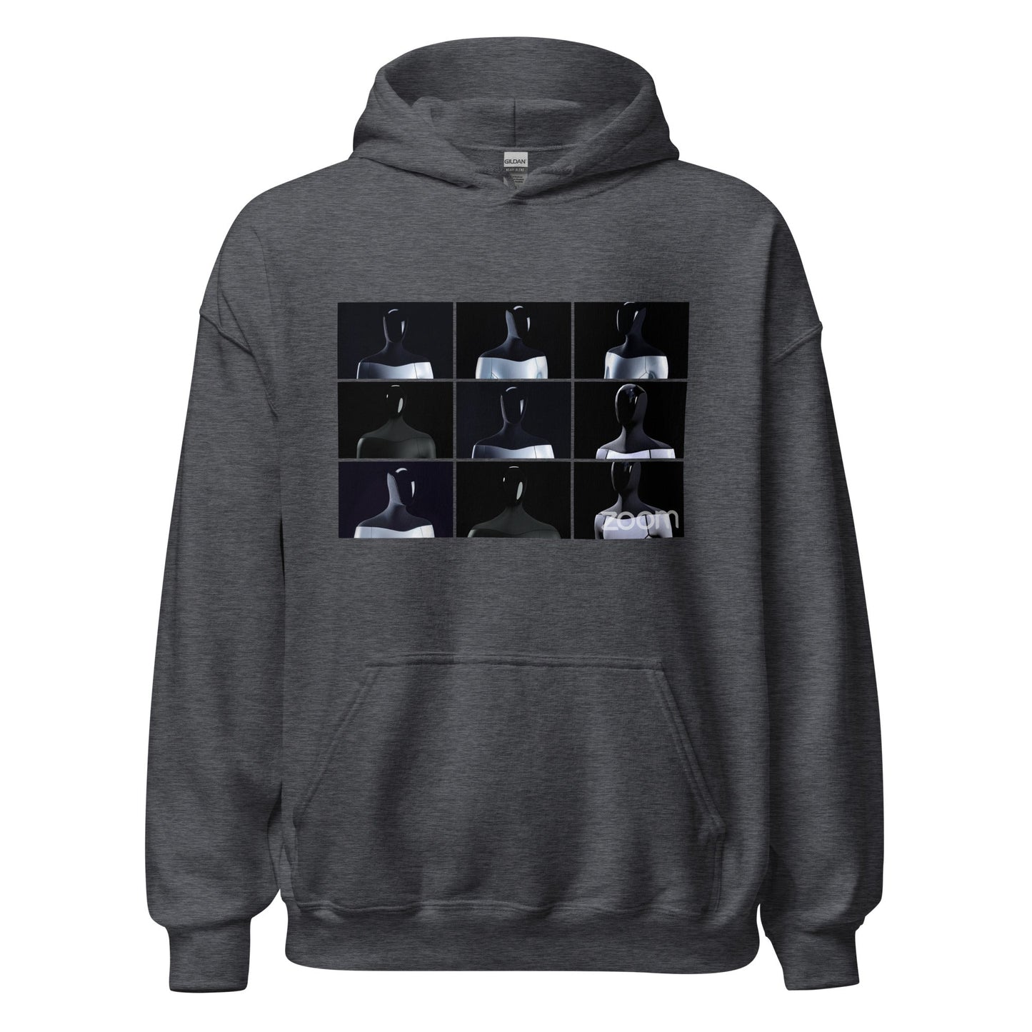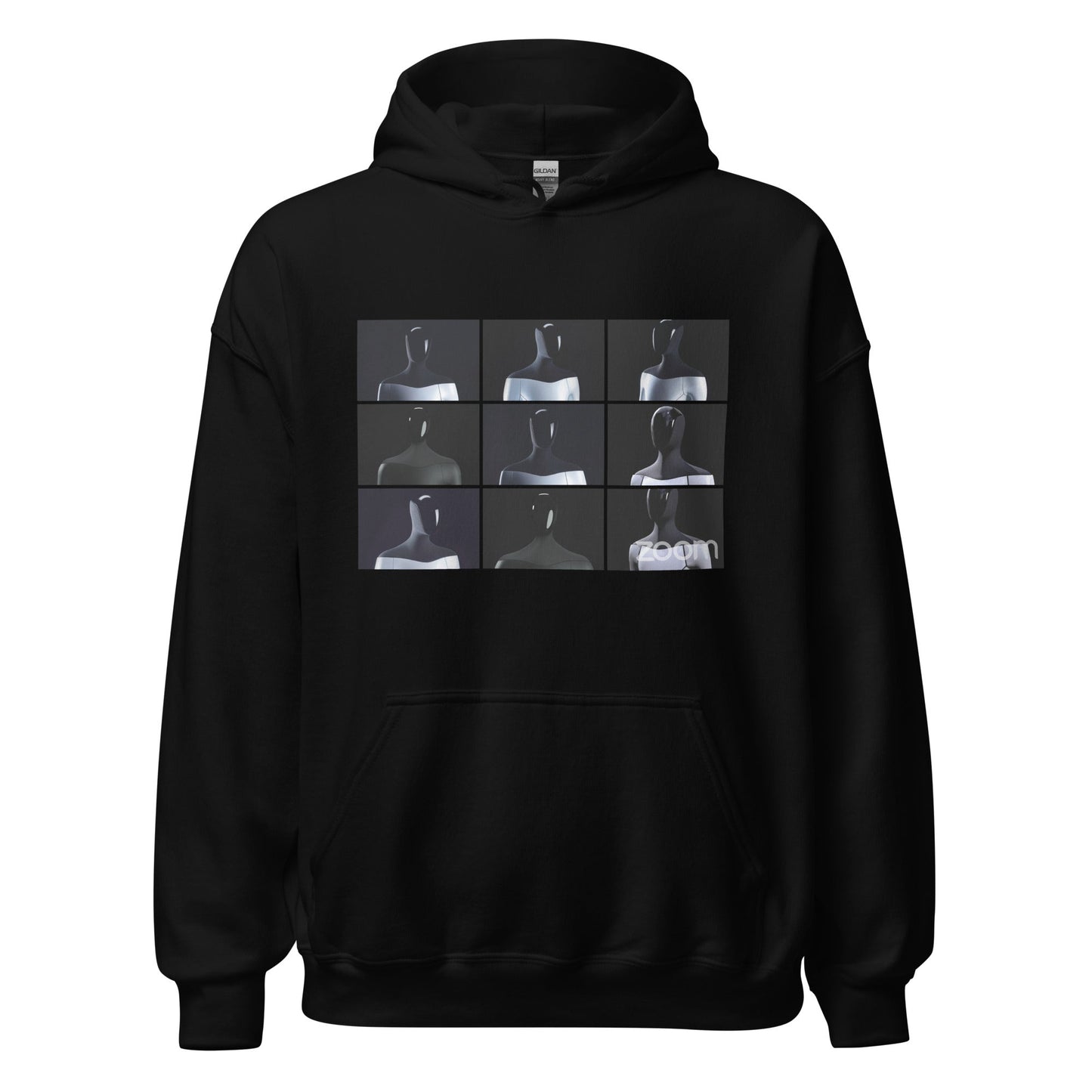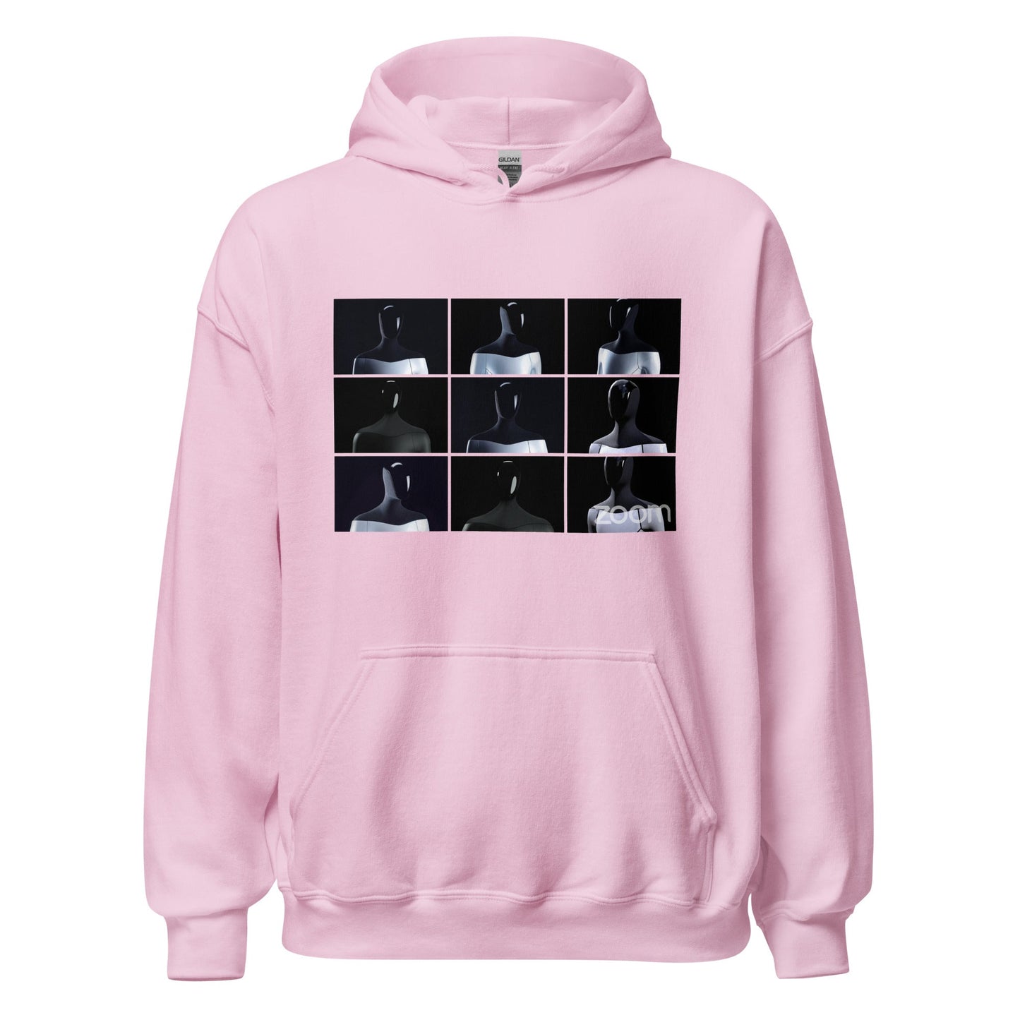 This unisex hoodie is an ideal selection for AI enthusiasts and tech lovers. It features a unique print of humanoid robots engaged in a Zoom call, aptly named 'Optimus'. The hoodie is made from 50% pre-shrunk cotton and 50% polyester, ensuring durability and comfort. Its fabric weight is 8.0 oz/yd² or 271.25 g/m², which offers warmth perfect for cooler evenings.