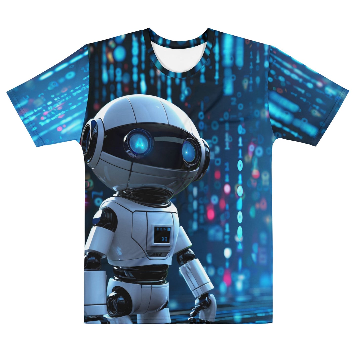The Programming Robot Hero T-Shirt for men is an excellent choice for individuals who are passionate about artificial intelligence and programming. This t-shirt showcases a dynamic all-over print featuring a robot champion coder, making it not only a visually appealing garment but also a conversation starter. Ideal for numerous occasions such as tech meetups, coding sessions, or casual outings, this t-shirt combines style with a geeky twist.