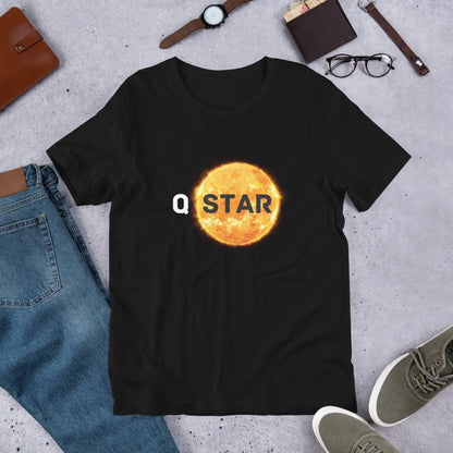 Product Description: For AI enthusiasts who appreciate the marriage of style and comfort, the Q* (Q-Star) T-Shirt 6 is a quintessential piece. Designed for both male and female AI aficionados, this t-shirt encapsulates the intrigue of AGI computing and the expansive possibilities of AI. It is crafted from 100% combed and ring-spun cotton, ensuring a soft, breathable feel, ideal for prolonged wear during tech-related activities or casual outings. The fabric is pre-shrunk, which guarantees consistent fit over time, and features side-seamed construction for enhanced durability. The captivating and subtle Q* design positioned centrally on the chest serves as a nod to the wearer's passion for cutting-edge technology.