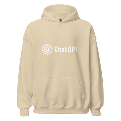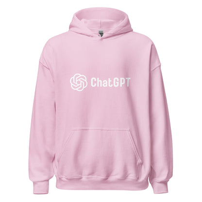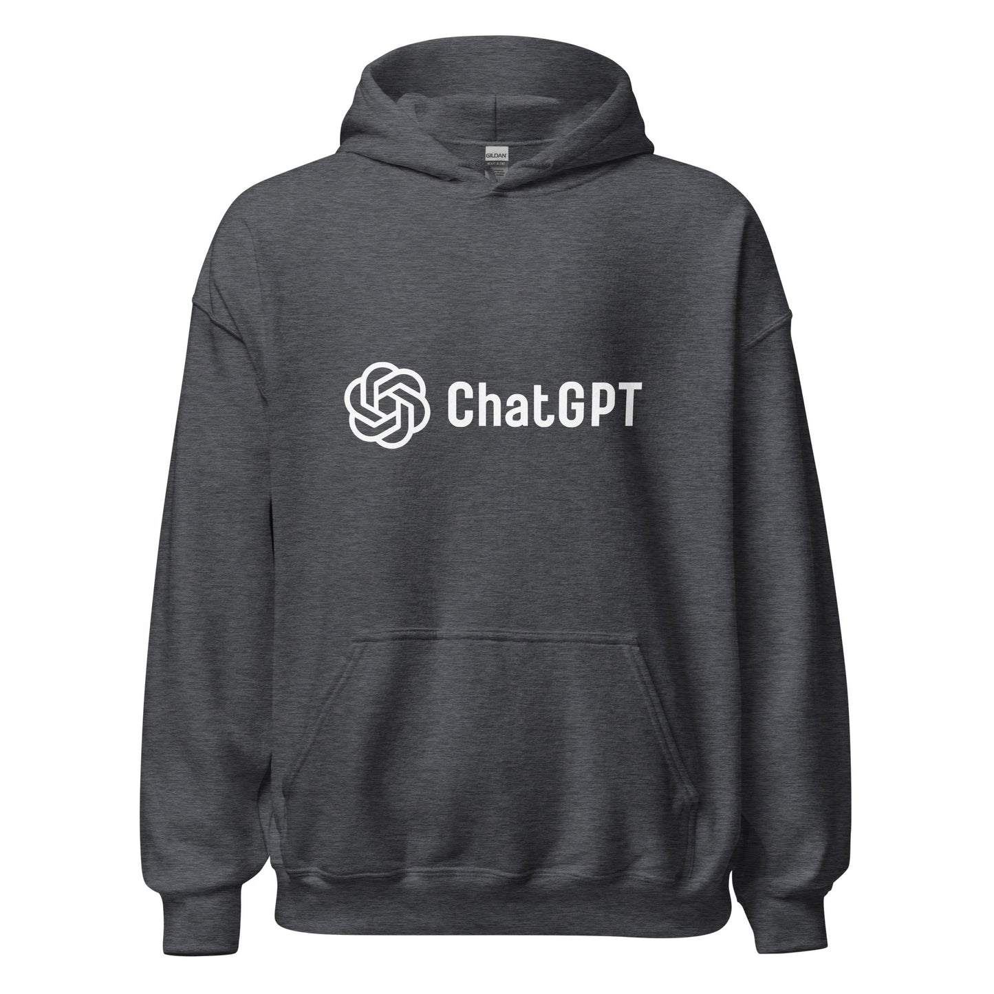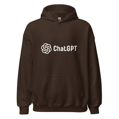 The hoodie's fabric weighs 8.0 oz/yd², making it suitable for cooler evenings but not overly heavy, ensuring it can be worn comfortably both indoors and out. The sleek black color highlighted with the stylized ChatGPT logo in white makes it a versatile piece, easily paired with different outfits.
